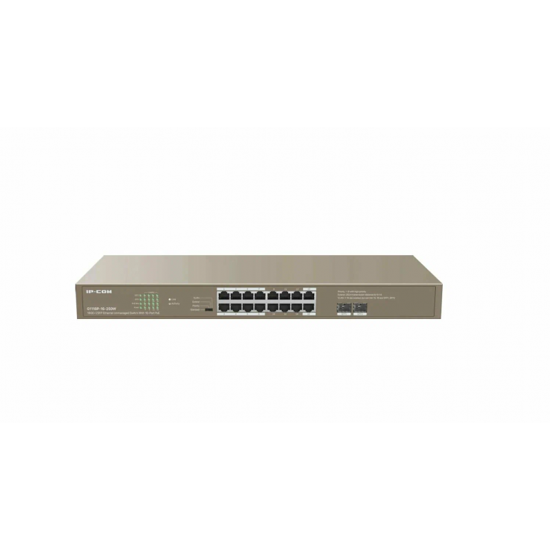Коммутатор IP-Com G1118P-16-250W (L2) 16x1Гбит/с 2xКомбо(1000BASE-T/SFP) 2SFP 16PoE 230W неуправляемый