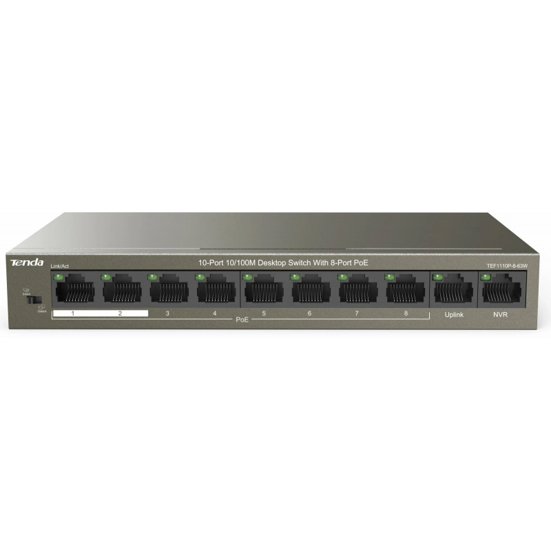 Коммутатор Tenda TEF1110P-8-63W (L2) 10x100Мбит/с 8PoE 58W неуправляемый