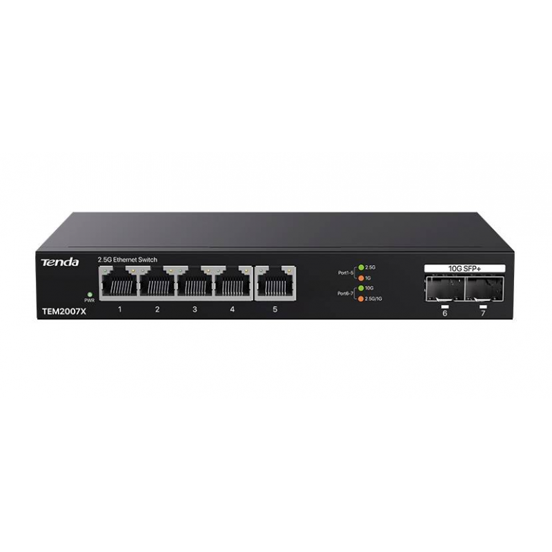 Коммутатор Tenda TEM2007X (L2) 5x2.5Гбит/с 2SFP+ неуправляемый