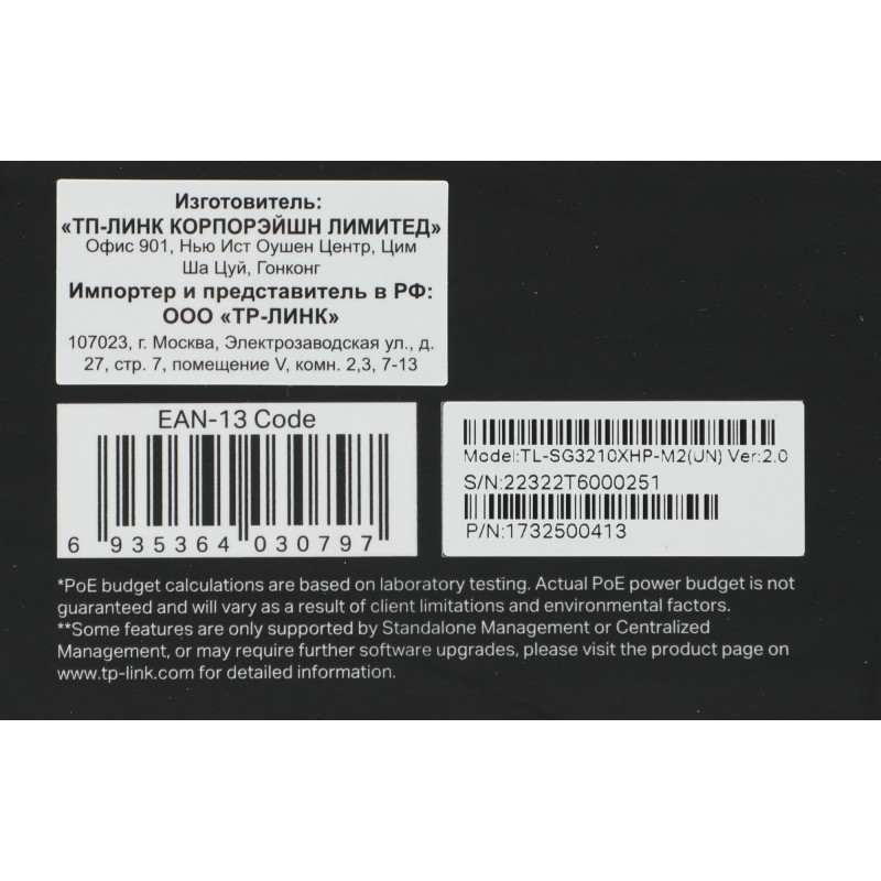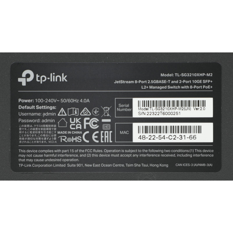 | PartNumber/Артикул Производителя | TL-SG3210XHP-M2 |