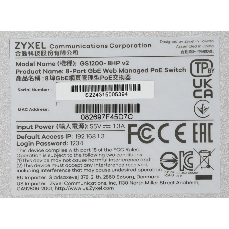 | PartNumber/Артикул Производителя | GS1200-8HPV2-EU0101F |