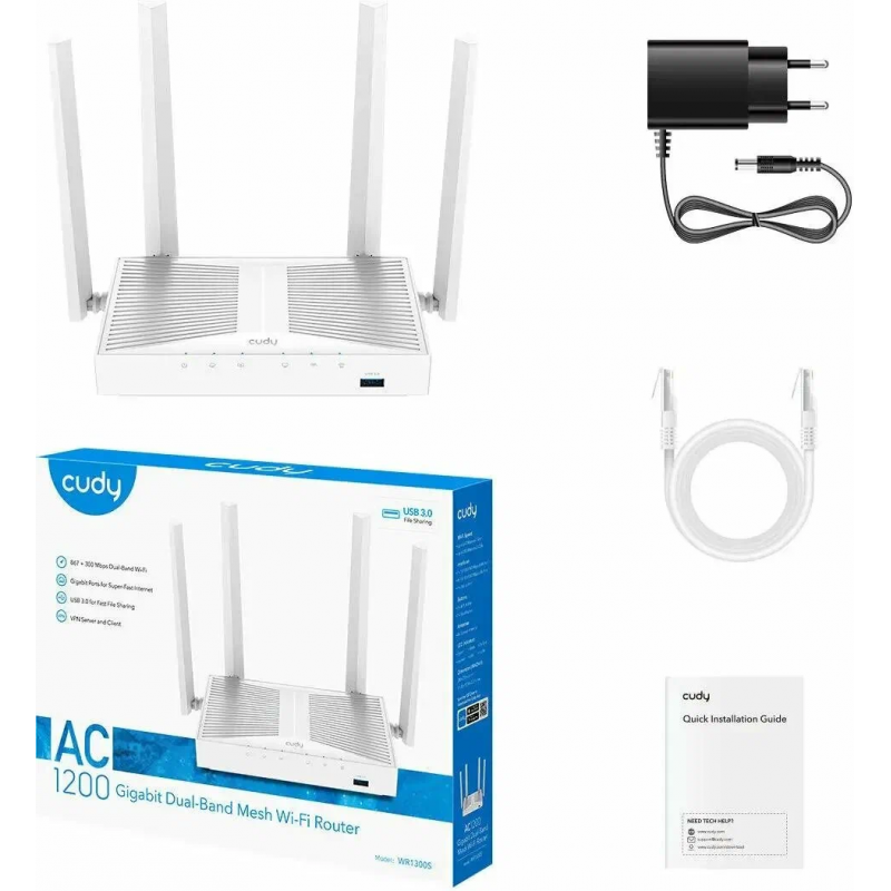 Роутер беспроводной Cudy WR1300S AC1200 10/100/1000BASE-TX белый