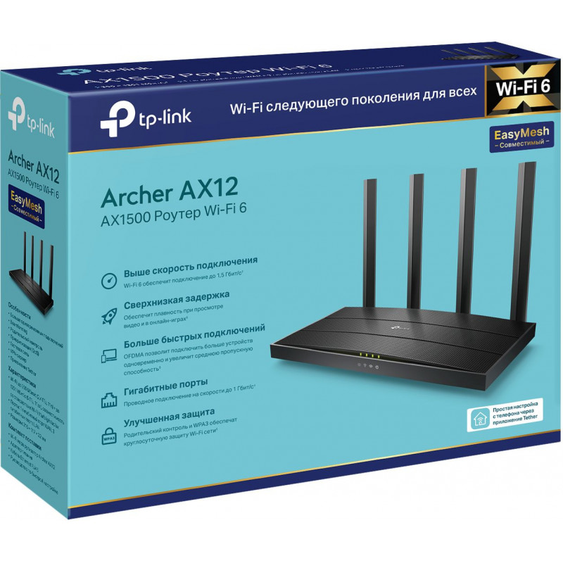 Роутер беспроводной TP-Link Archer AX12 AX1500 10/100/1000BASE-TX черный