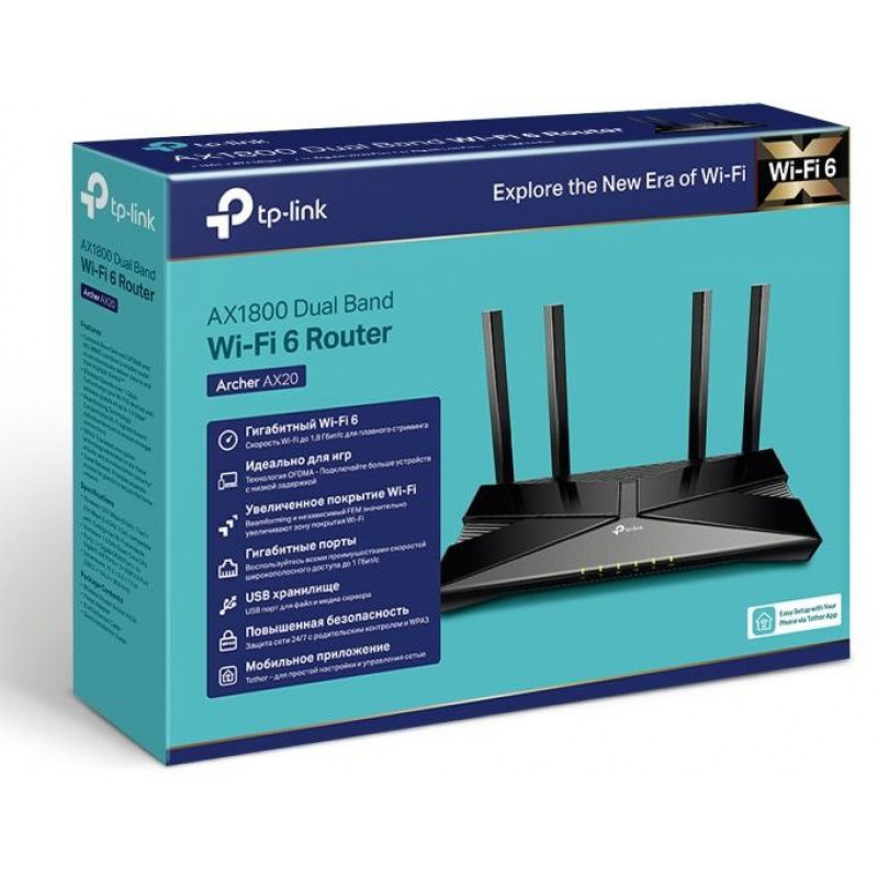 Роутер беспроводной TP-Link Archer AX20 AX1800 10/100/1000BASE-TX черный