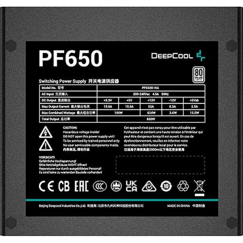 Блок питания Deepcool ATX 650W PF650 80+ white (20+4pin) APFC 120mm fan 6xSATA RTL