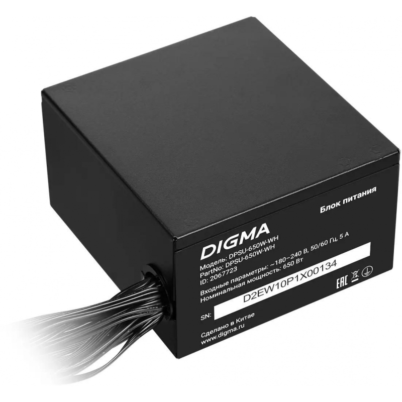 Блок питания Digma ATX 650W DPSU-650W-WH 80+ white (20+4pin) APFC 120mm fan 6xSATA RTL