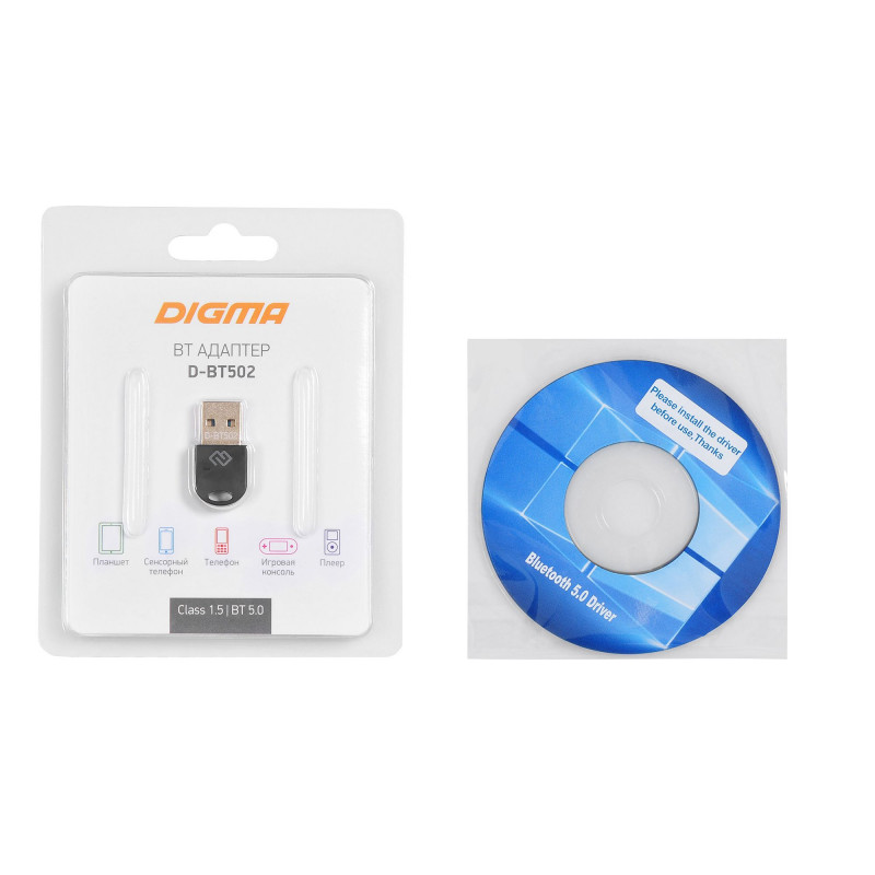 Адаптер USB Digma D-BT502 Bluetooth 5.0+EDR class 1.5 20м черный