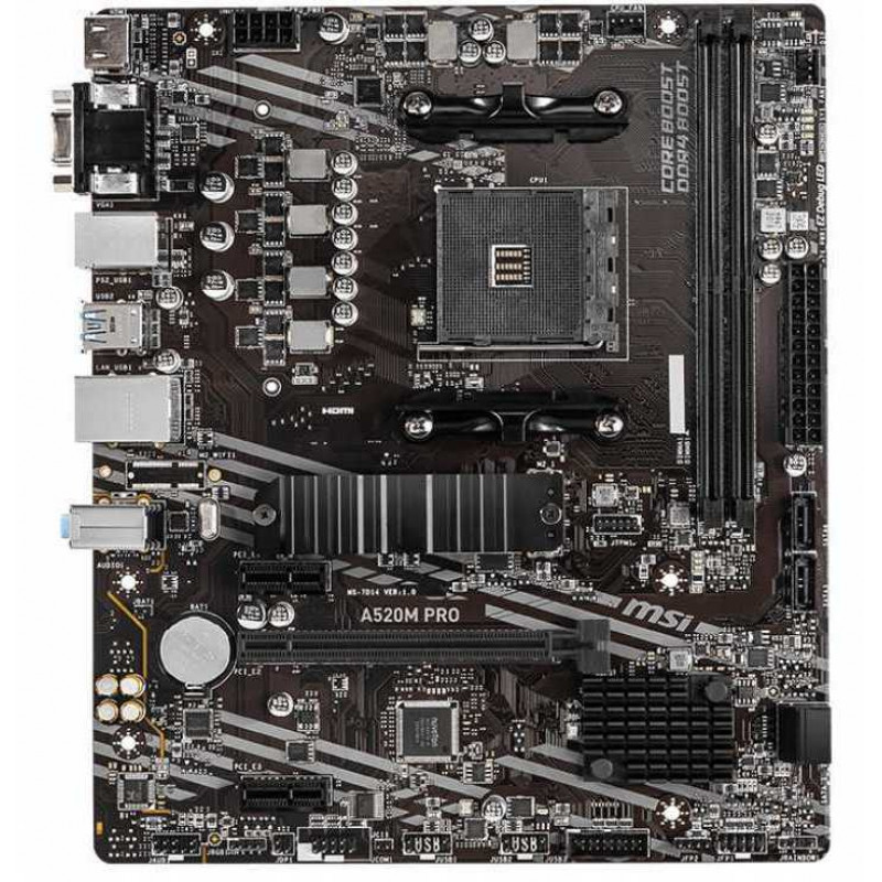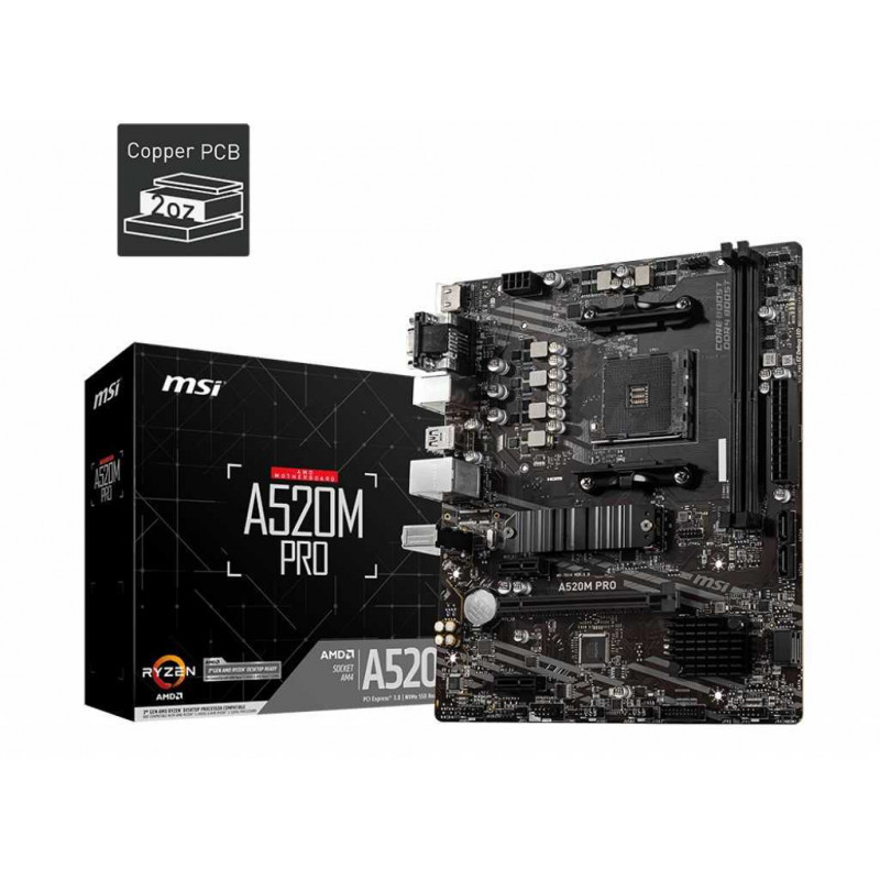 Материнская плата MSI A520M PRO Soc-AM4 AMD A520 2xDDR4 mATX AC`97 8ch(7.1) GbLAN RAID+VGA+HDMI+DP