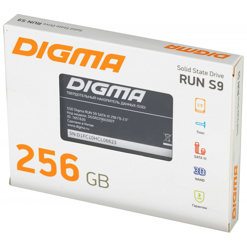 Накопитель SSD Digma SATA-III 256GB DGSR2256GS93T Run S9 2.5"