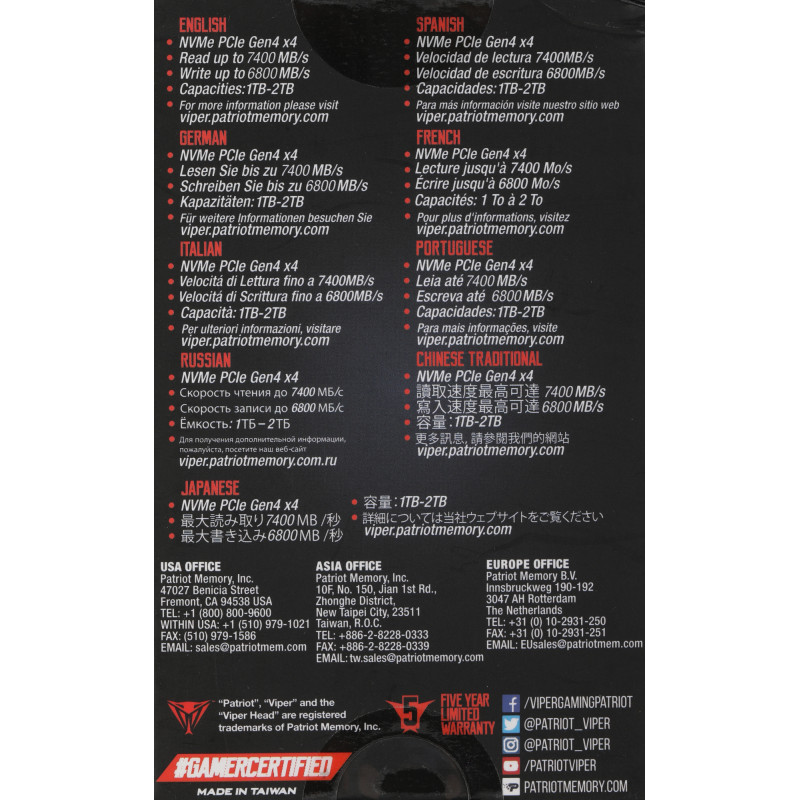 Накопитель SSD Patriot PCIe 4.0 x4 2TB VP4300-2TBM28H Viper VP4300 M.2 2280