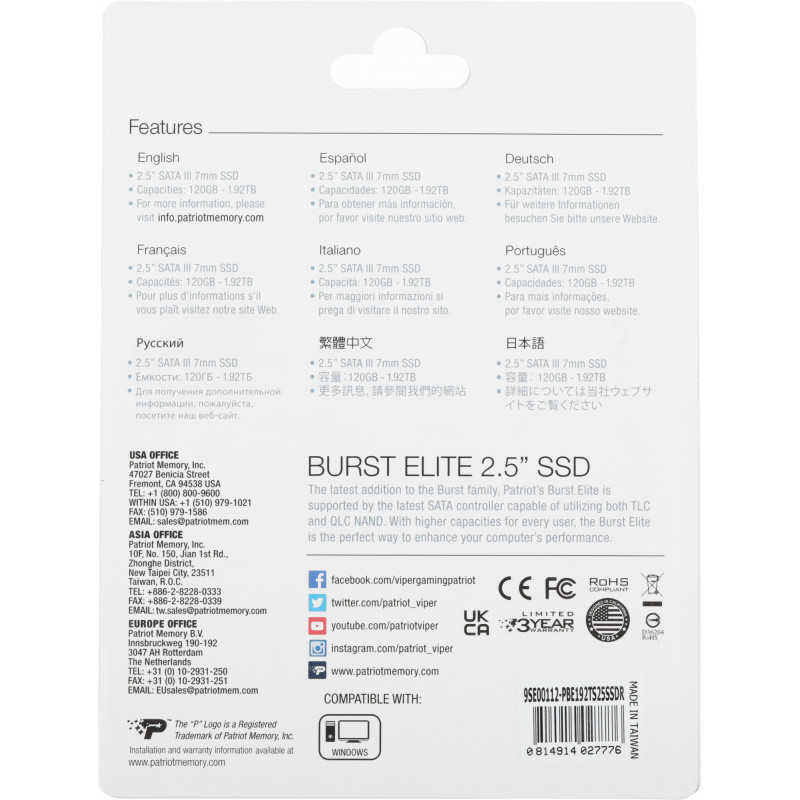 Накопитель SSD Patriot SATA-III 1.92TB PBE192TS25SSDR Burst Elite 2.5"