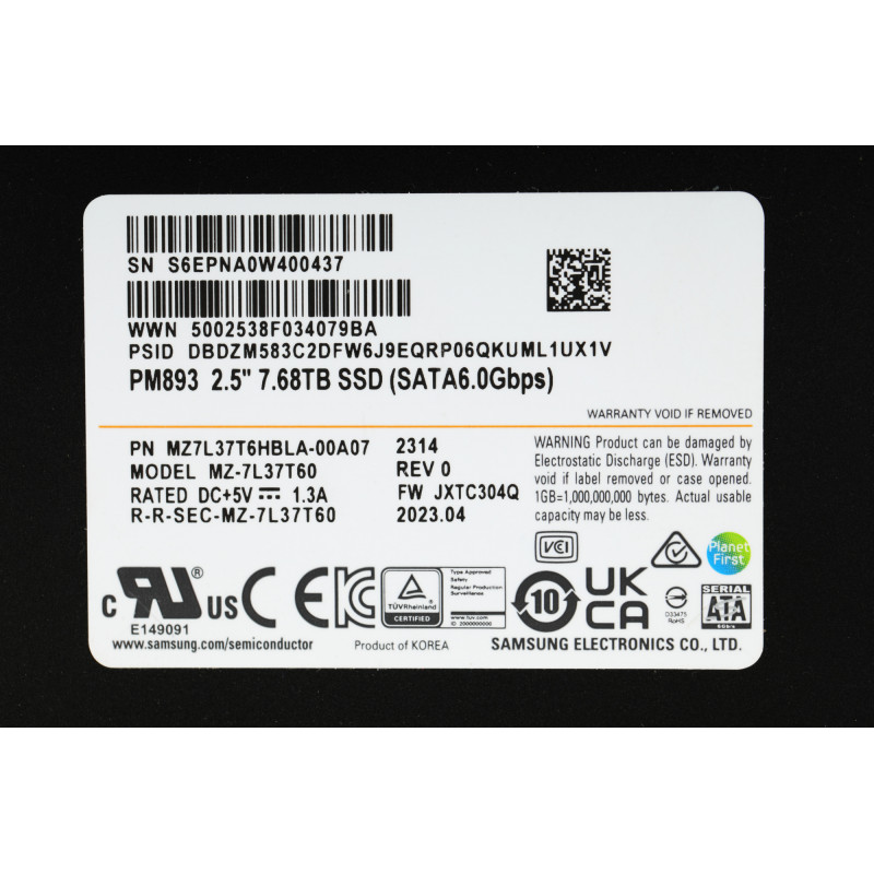 Накопитель SSD Samsung SATA-III 7.68TB MZ7L37T6HBLA-00A07 PM893 2.5" 1 DWPD OEM