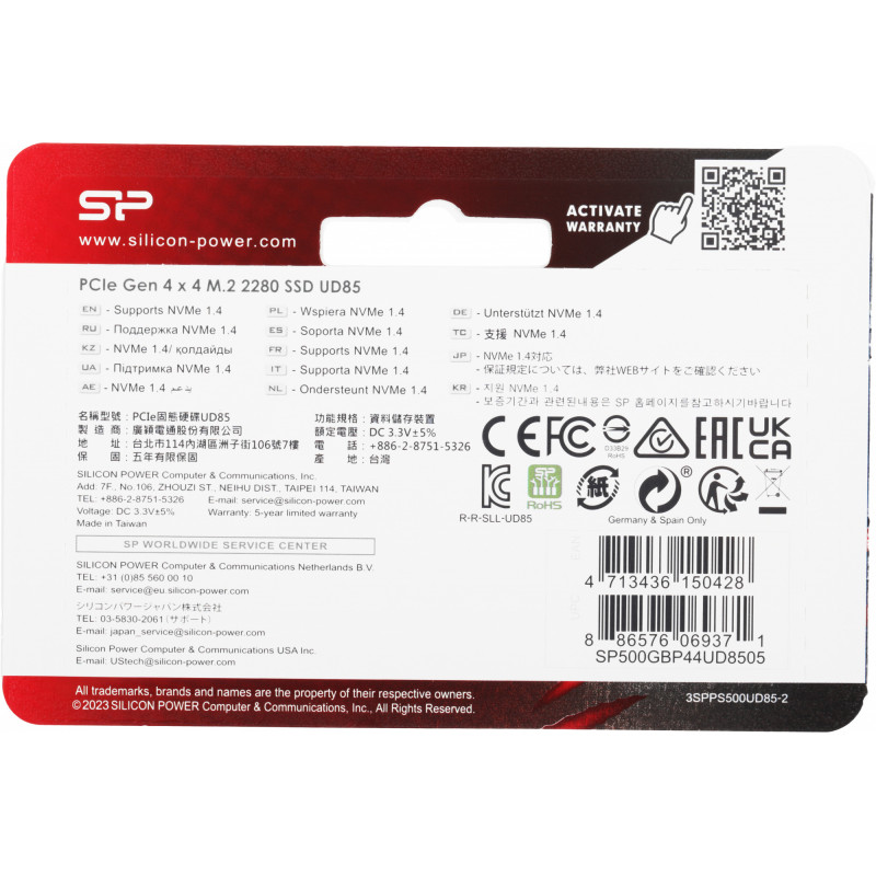 Накопитель SSD Silicon Power PCIe 4.0 x4 500GB SP500GBP44UD8505 M-Series UD85 M.2 2280