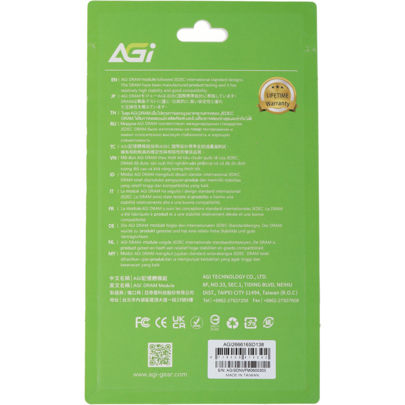 | Ссылка на сайт поставщика/вендора | https://agi-gear.com/product/sd138-ddr4-sodimm-2666mhz/ |