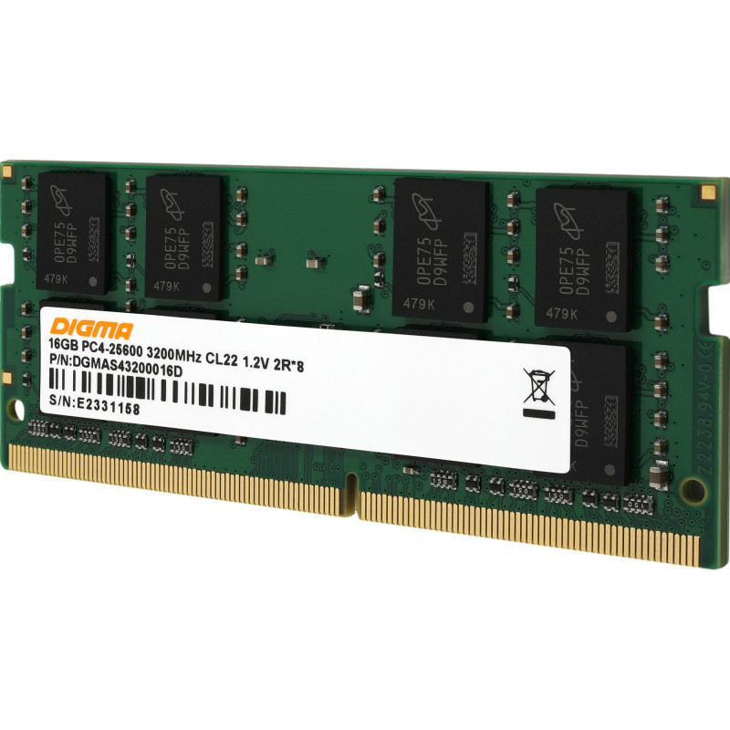 Память DDR4 16Gb 3200MHz Digma DGMAS43200016D RTL PC4-25600 CL22 SO-DIMM 260-pin 1.2В dual rank Ret