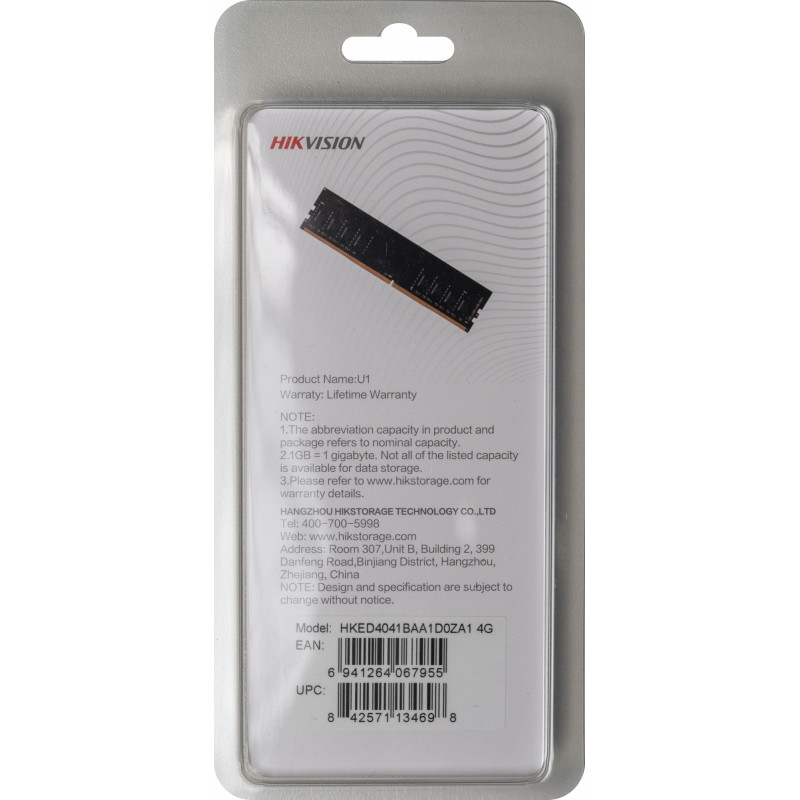 Память DDR4 4Gb 2666MHz Hikvision HKED4041BAA1D0ZA1/4G RTL PC4-21300 CL19 DIMM 288-pin 1.2В Ret