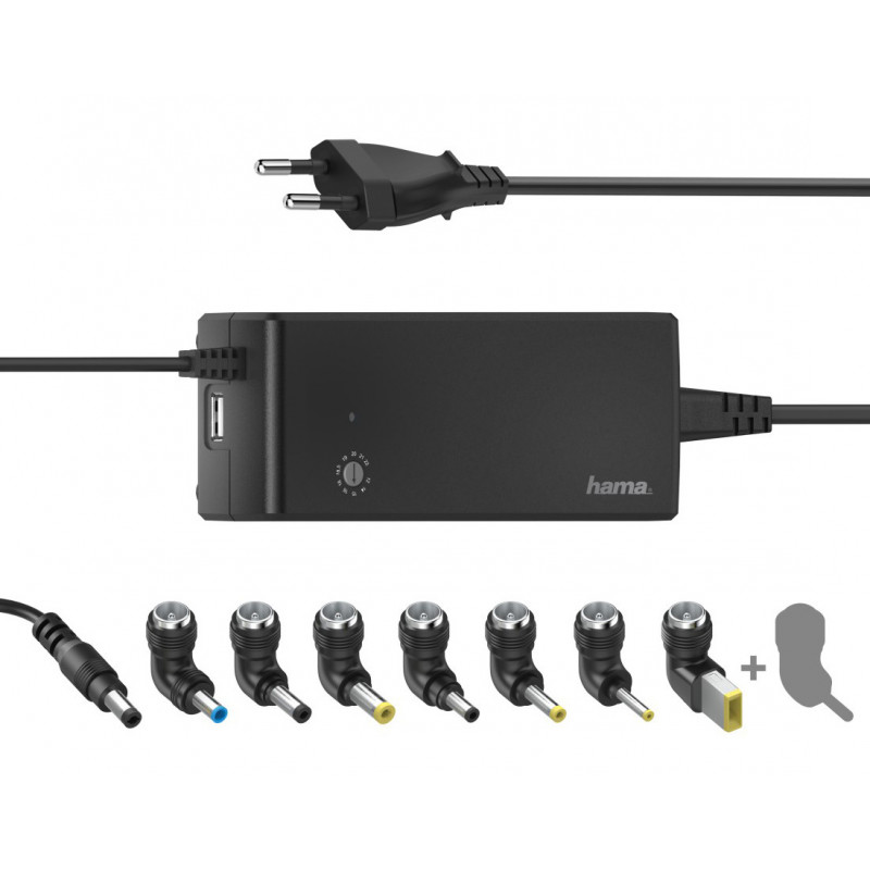 Блок питания Hama H-200004 автоматический 90W 12V-22V 8-connectors 4A 1xUSB от бытовой электросети
