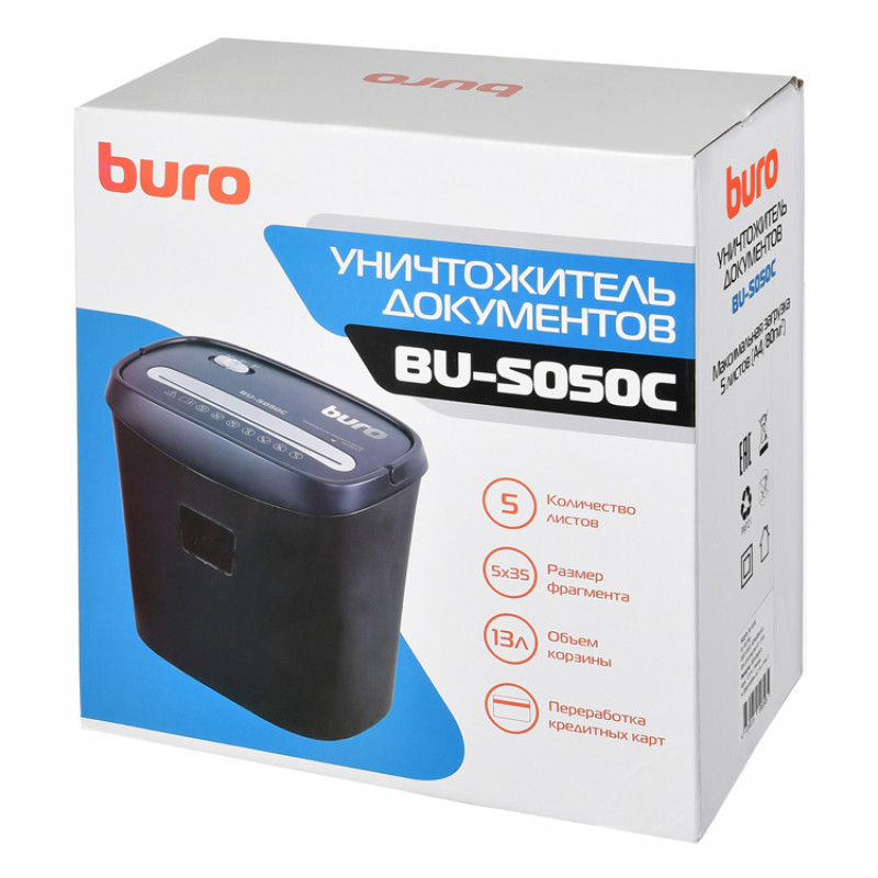 Шредер Buro Home BU-S050C (секр.P-3) фрагменты 5лист. 13лтр. пл.карты