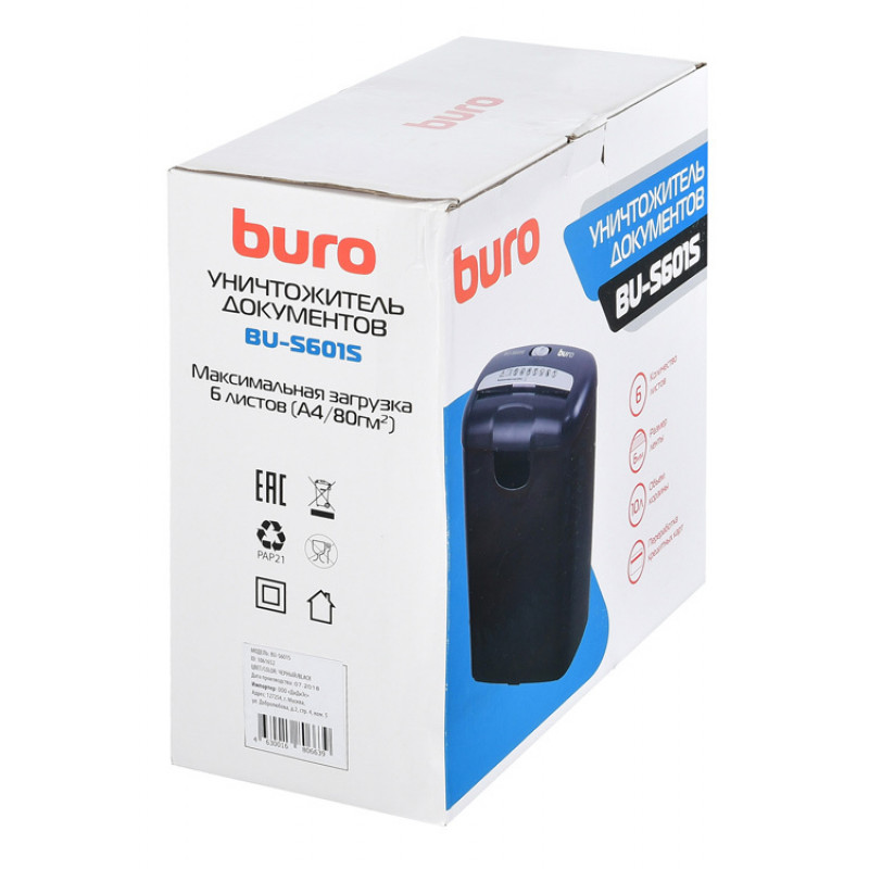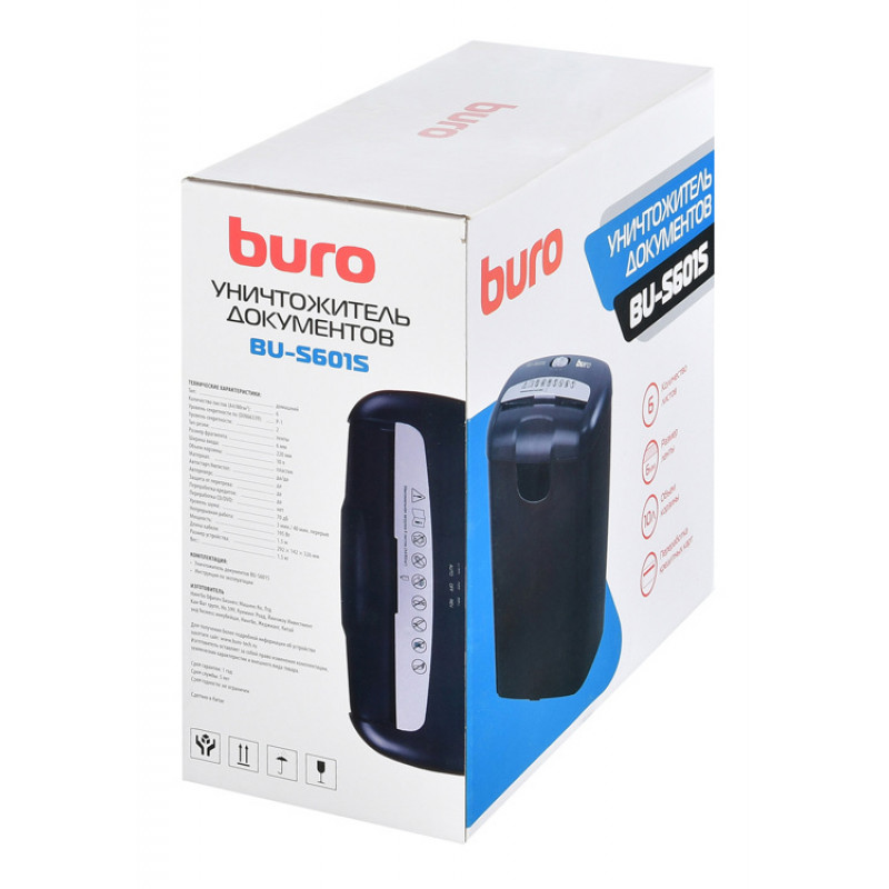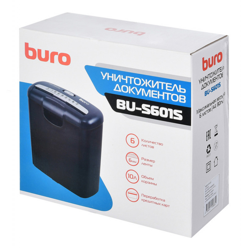 Шредер Buro Home BU-S601S (секр.Р-1) ленты 6лист. 10лтр. пл.карты