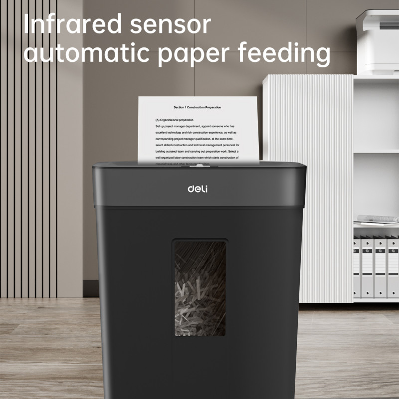 Шредер Deli ET023 черный с автоподачей (секр.P-4) фрагменты 8лист. 15лтр.