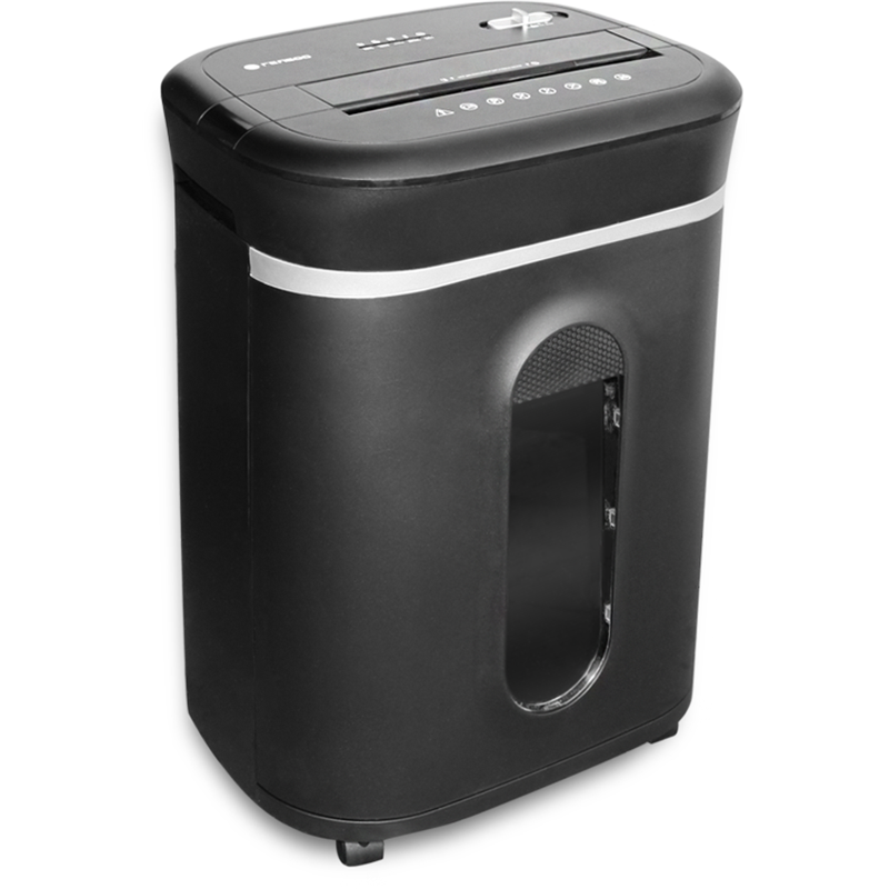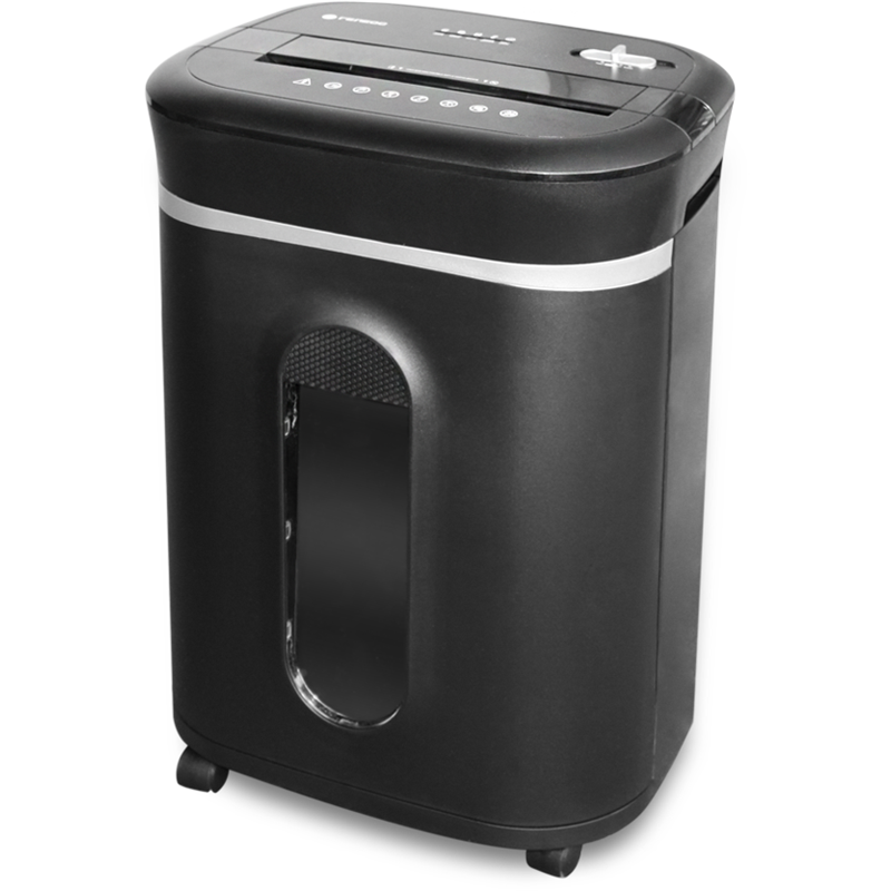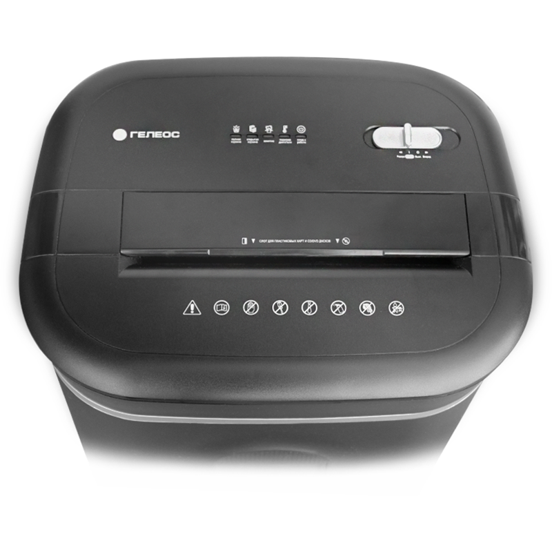 Шредер Heleos УМ28-5 черный/серебристый (секр.P-5) фрагменты 12лист. 28лтр. скрепки скобы пл.карты CD