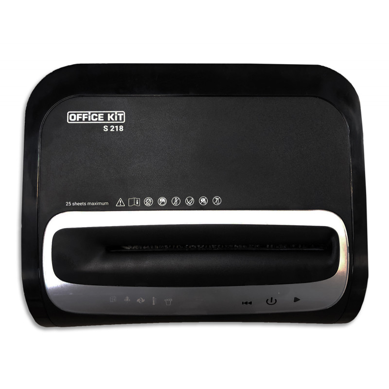Шредер Office Kit S218 (1, 9x13) черный (секр.P-5) фрагменты 22лист. 30лтр. скрепки скобы пл.карты CD
