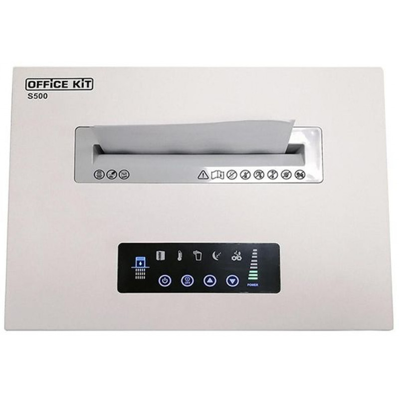Шредер Office Kit S500 белый (секр.P-5) фрагменты 17лист. 50лтр. скрепки скобы пл.карты CD