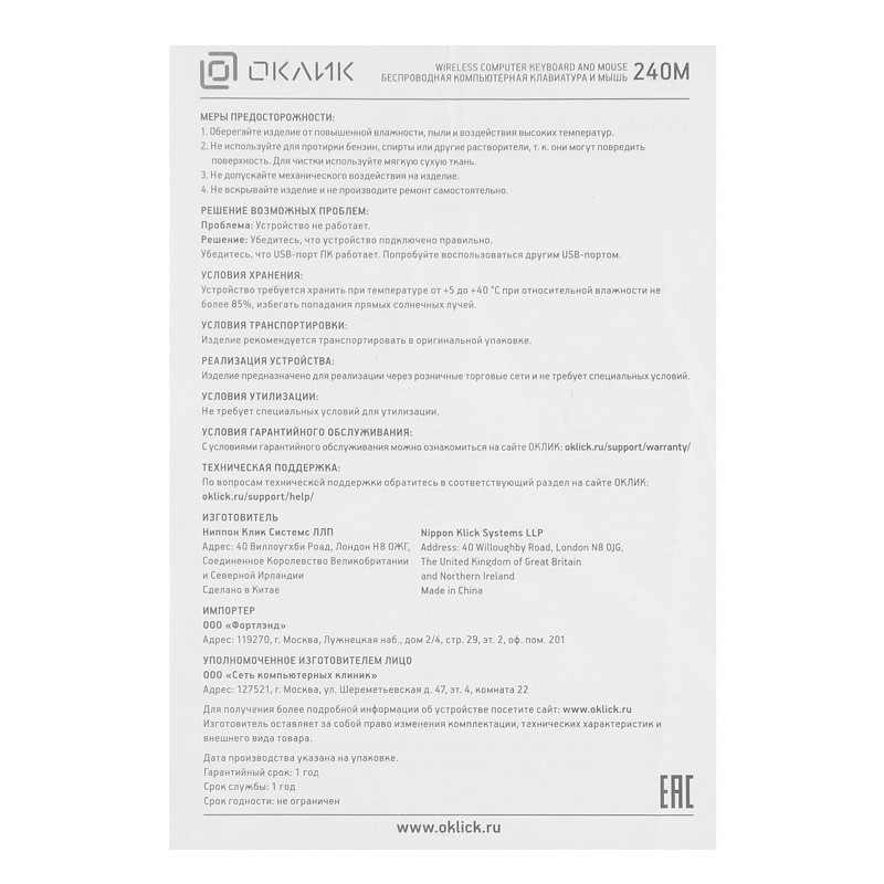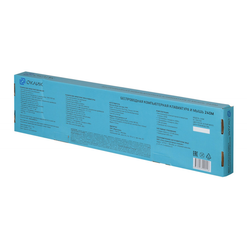 Клавиатура + мышь Оклик 240M клав:белый мышь:белый USB беспроводная slim Multimedia