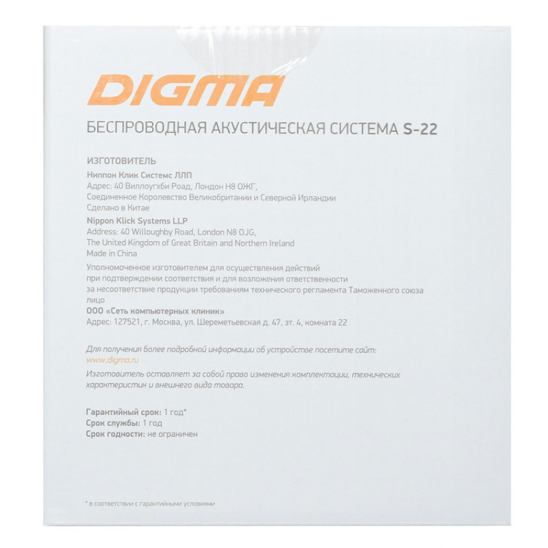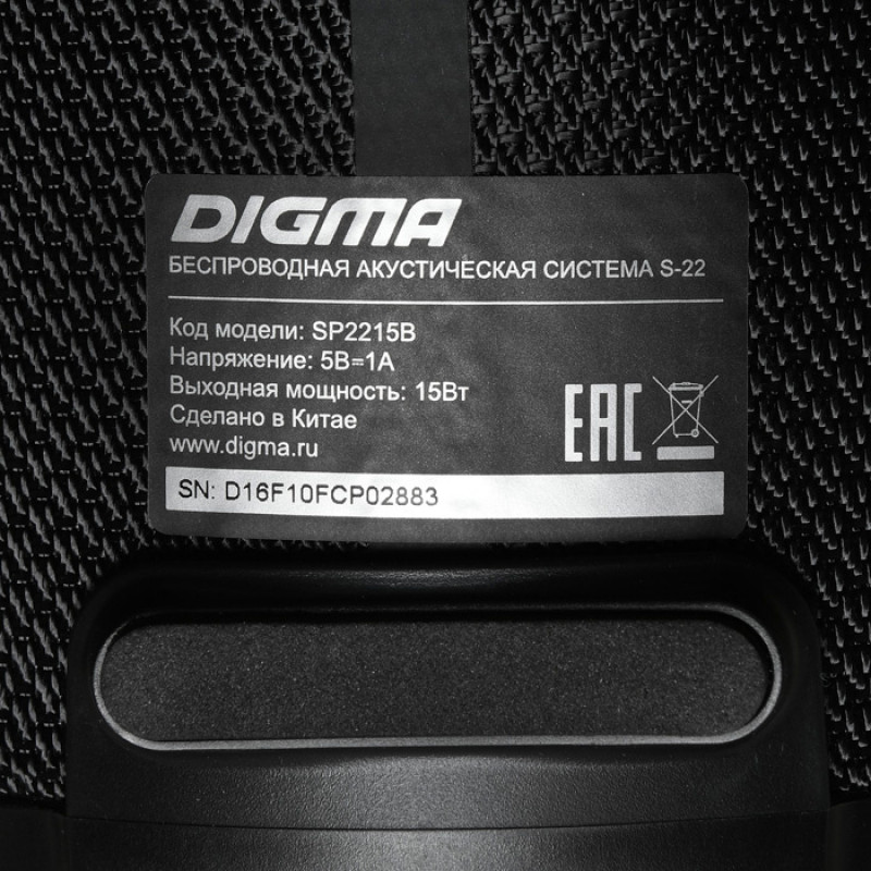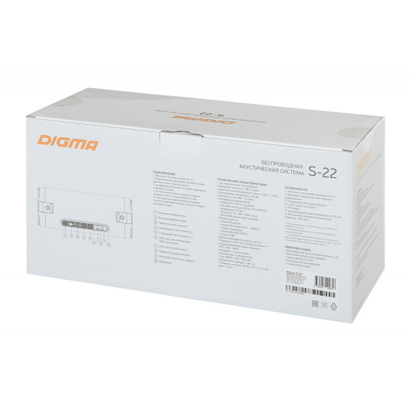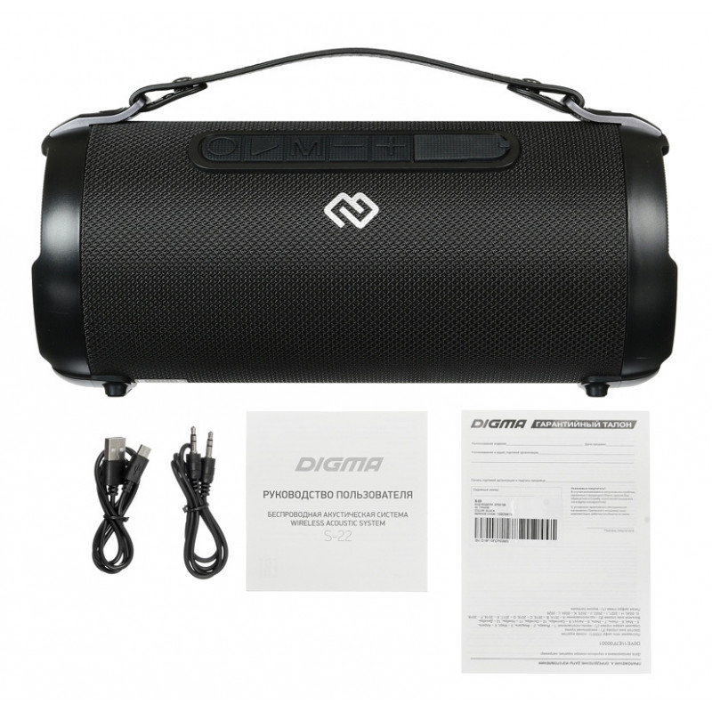 Колонка порт. Digma S-22 черный 15W 1.0 BT 1500mAh (SP2215B)