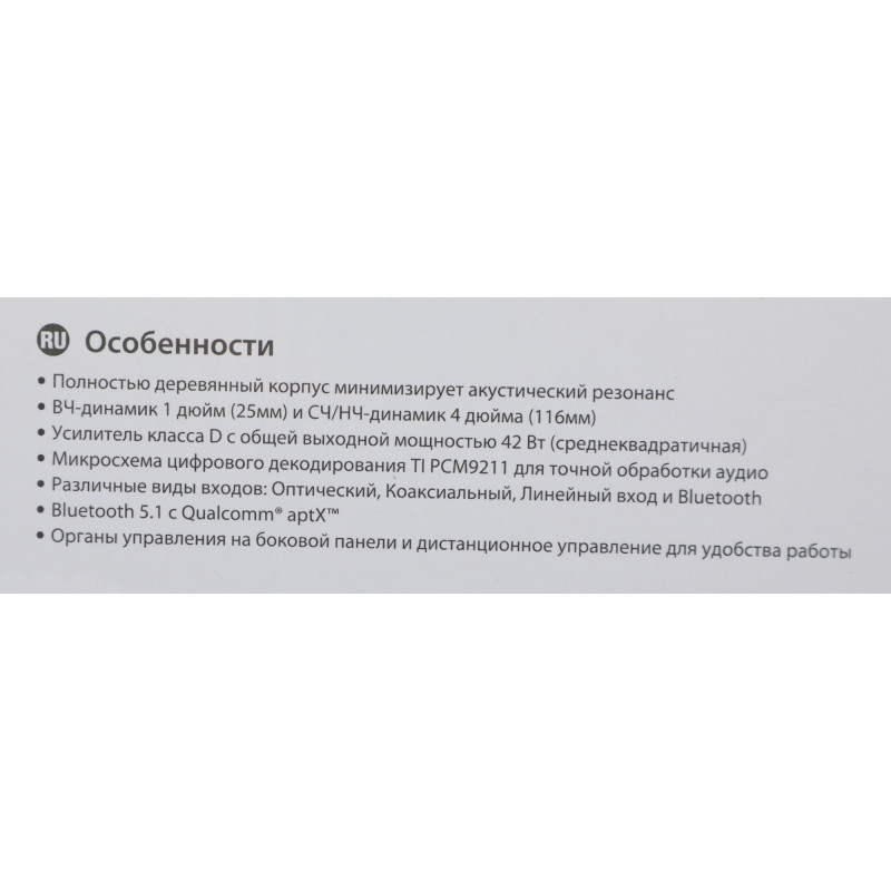 | Фронтальные колонки (мощность одного динамика) | 21 |