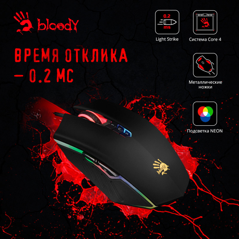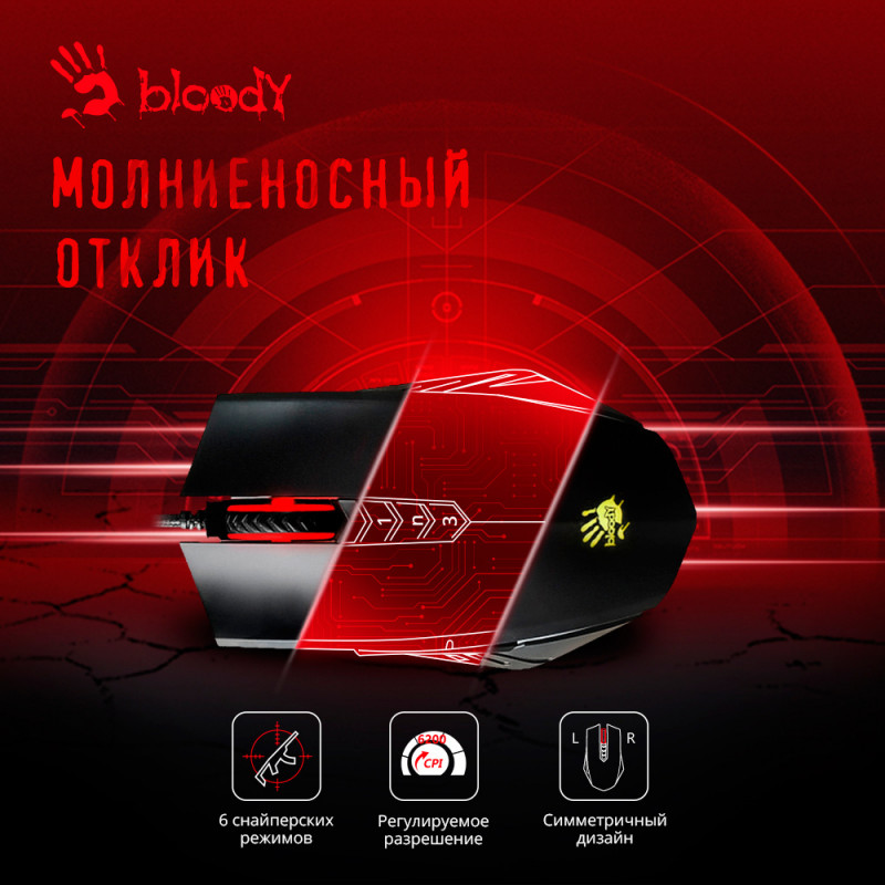 Мышь A4Tech Bloody A70 черный оптическая (6200dpi) USB (8but)