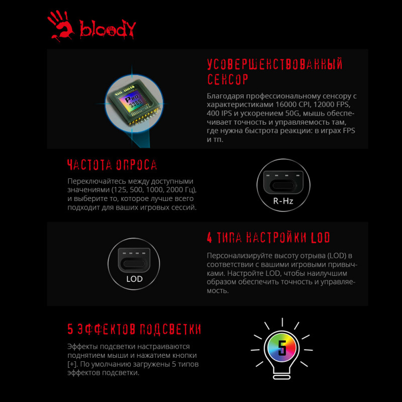 | Особенности | Игровой сенсор PixArt PMW3389 |