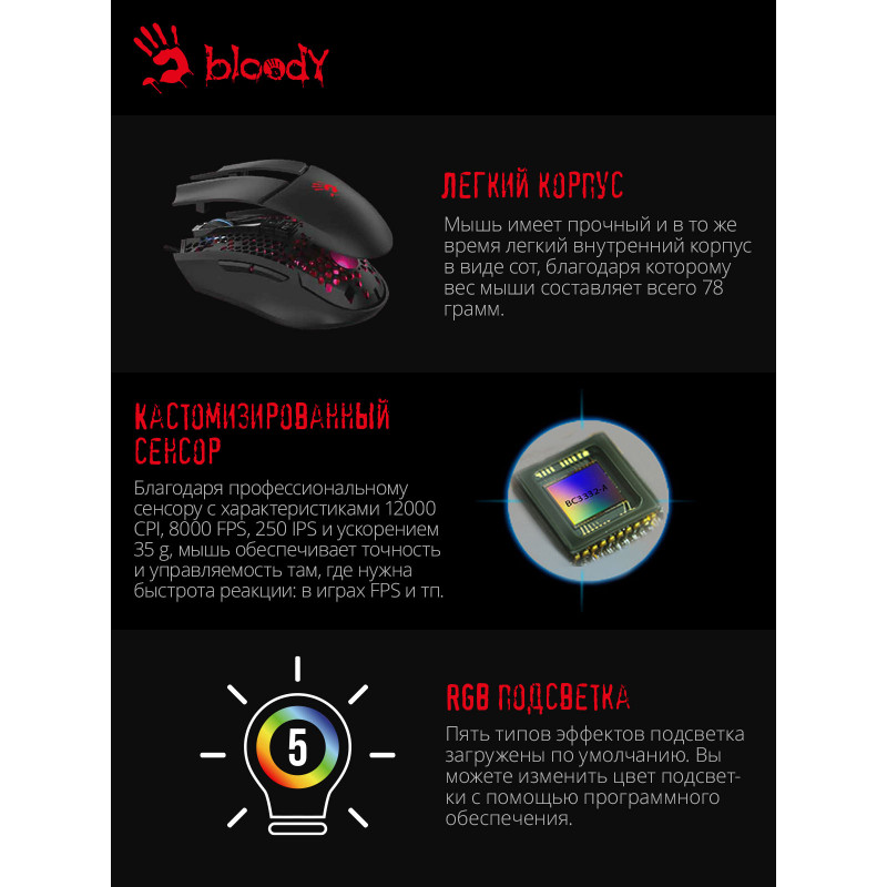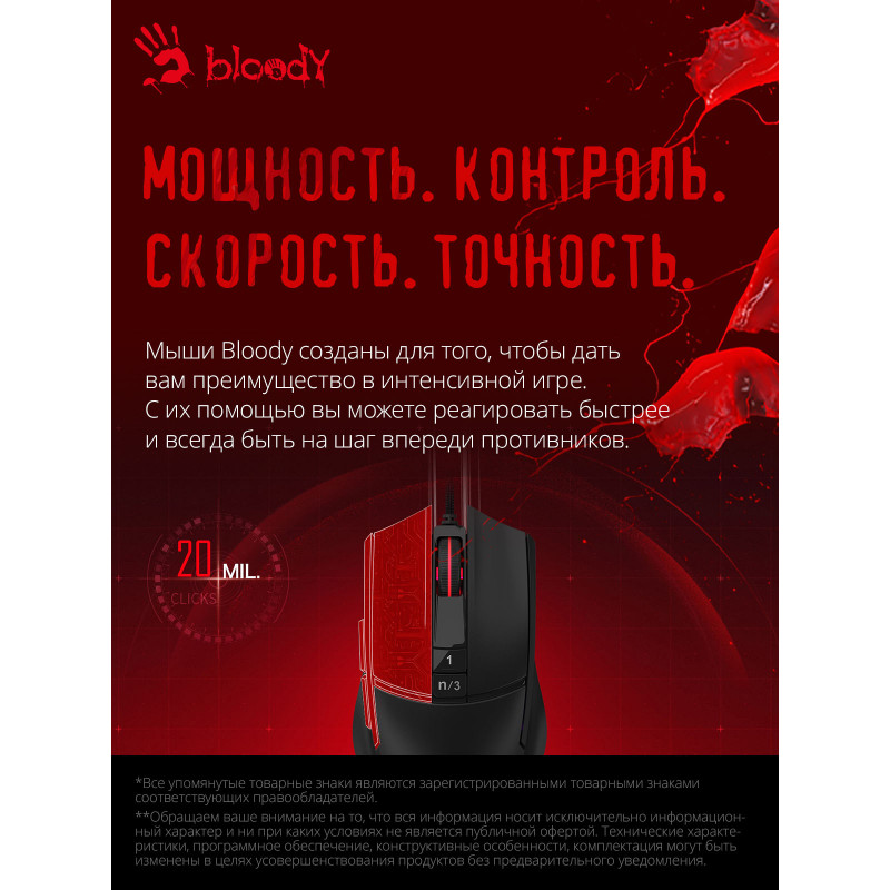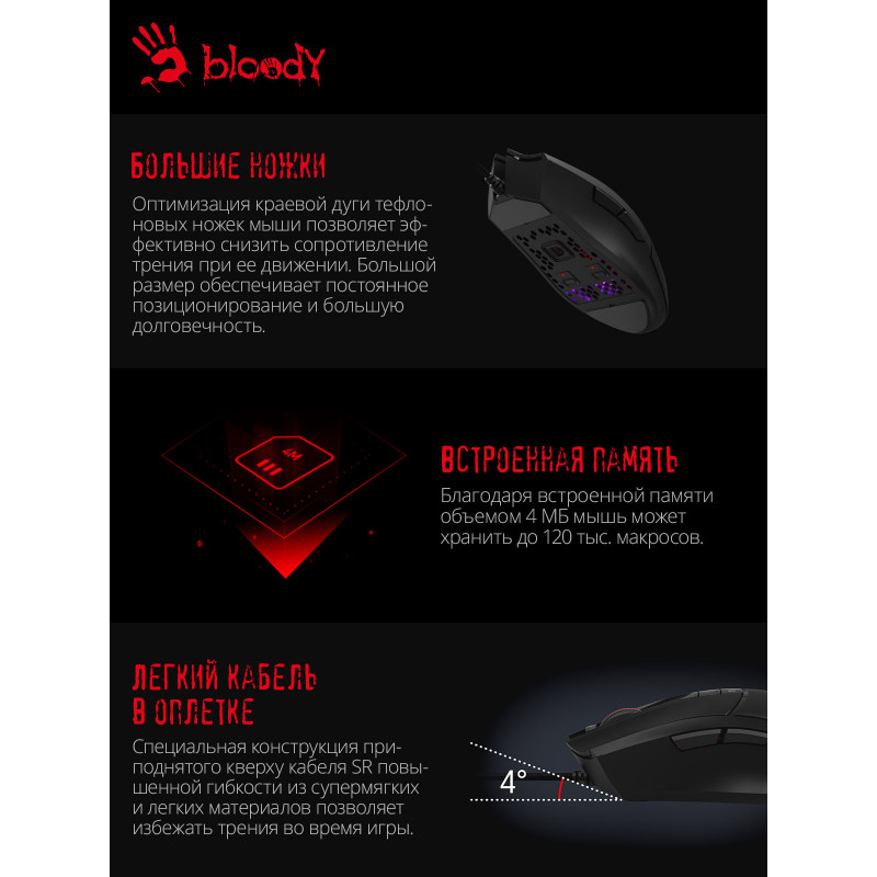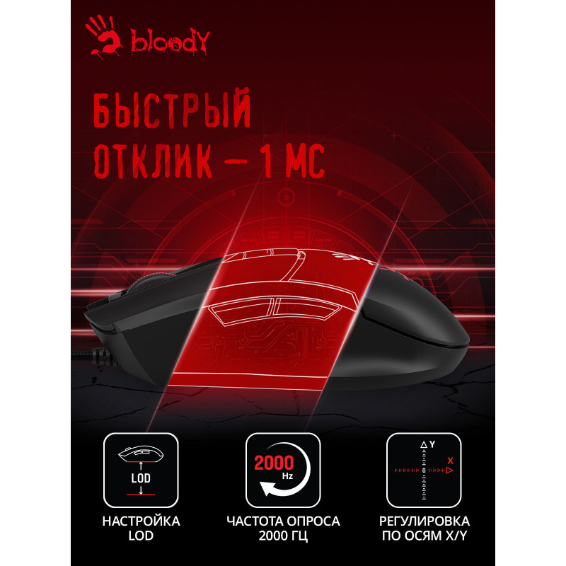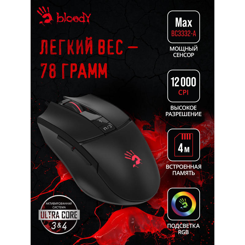 Мышь A4Tech Bloody L65 Max черный оптическая 12000dpi USB 6but (L65 MAX/STONE BLACK)