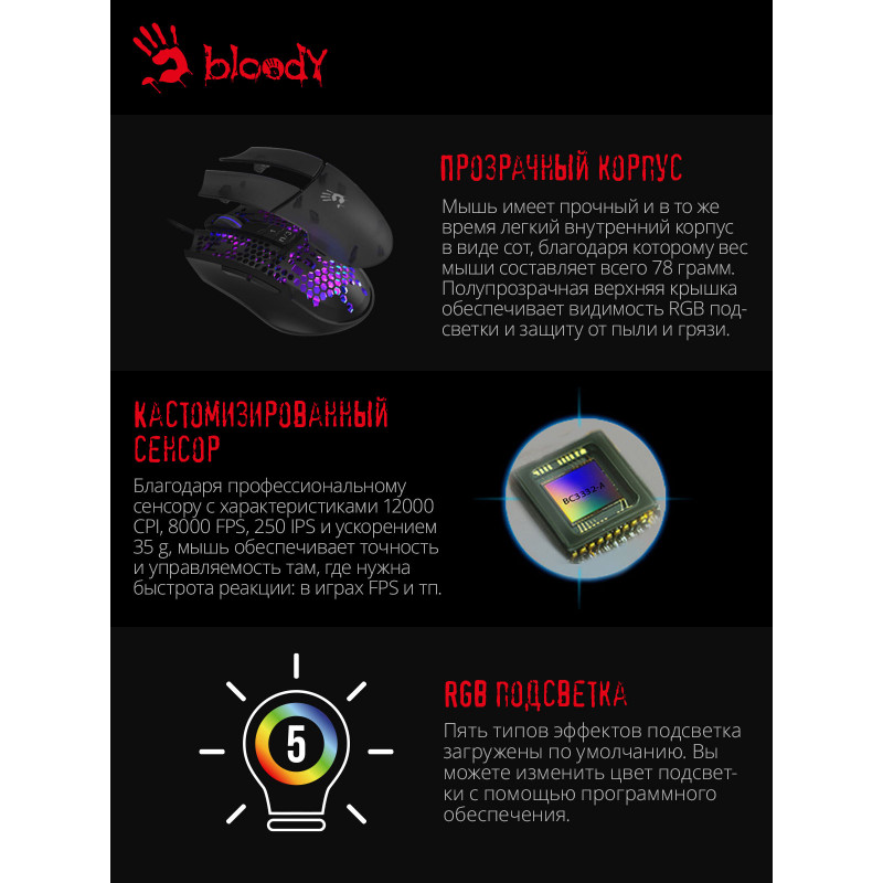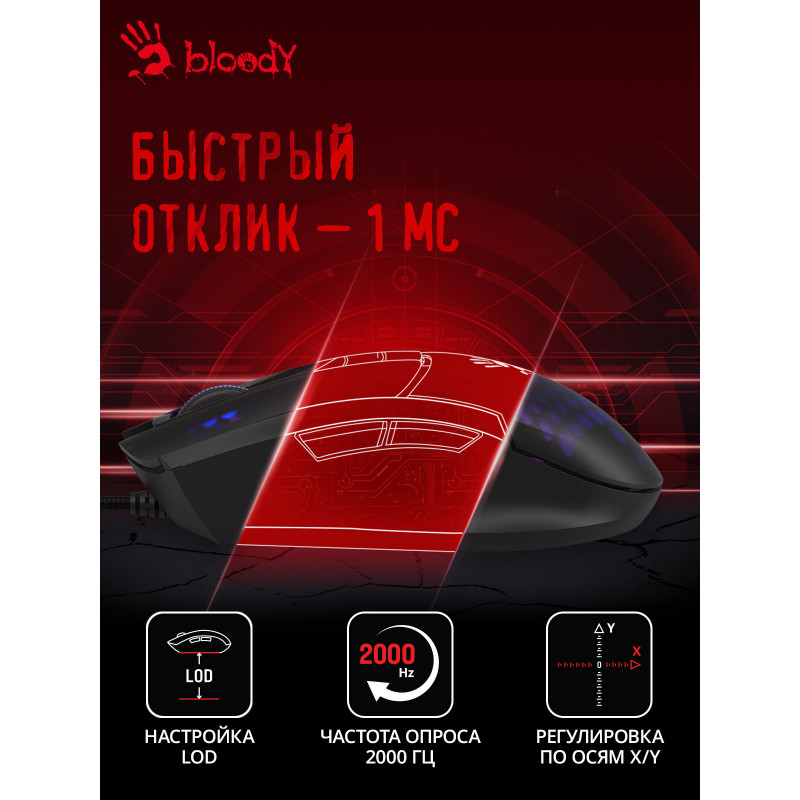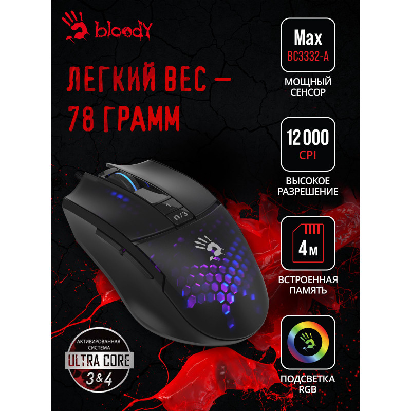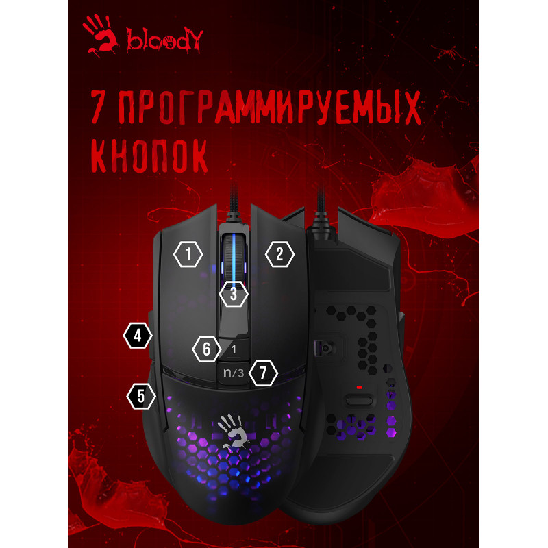 Мышь A4Tech Bloody L65 Max черный/фиолетовый оптическая 12000dpi USB 6but (L65 MAX/HONEYCOMB)