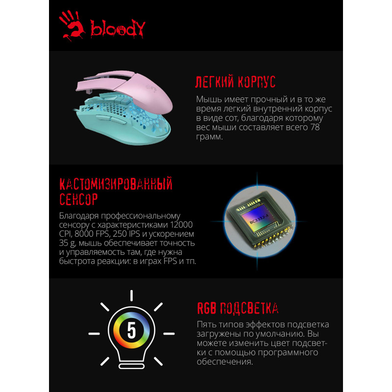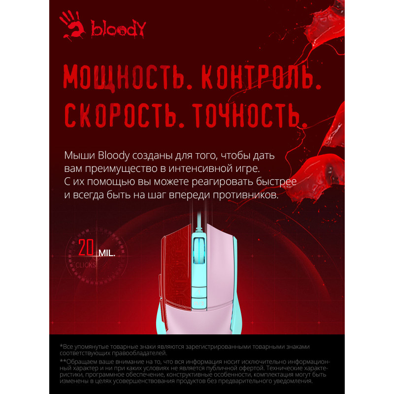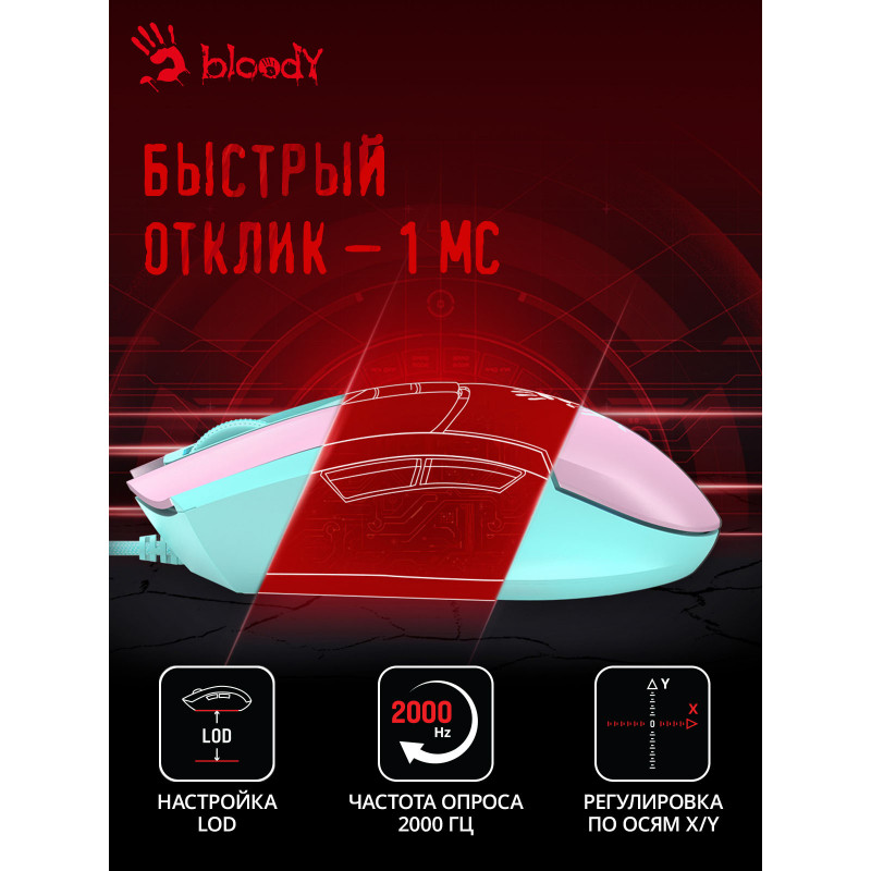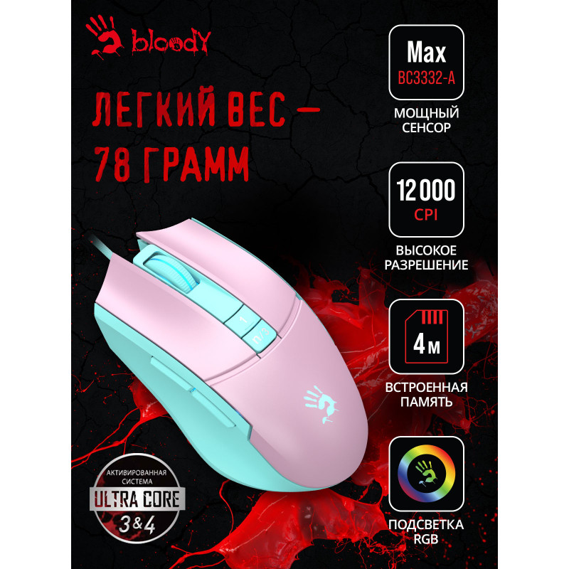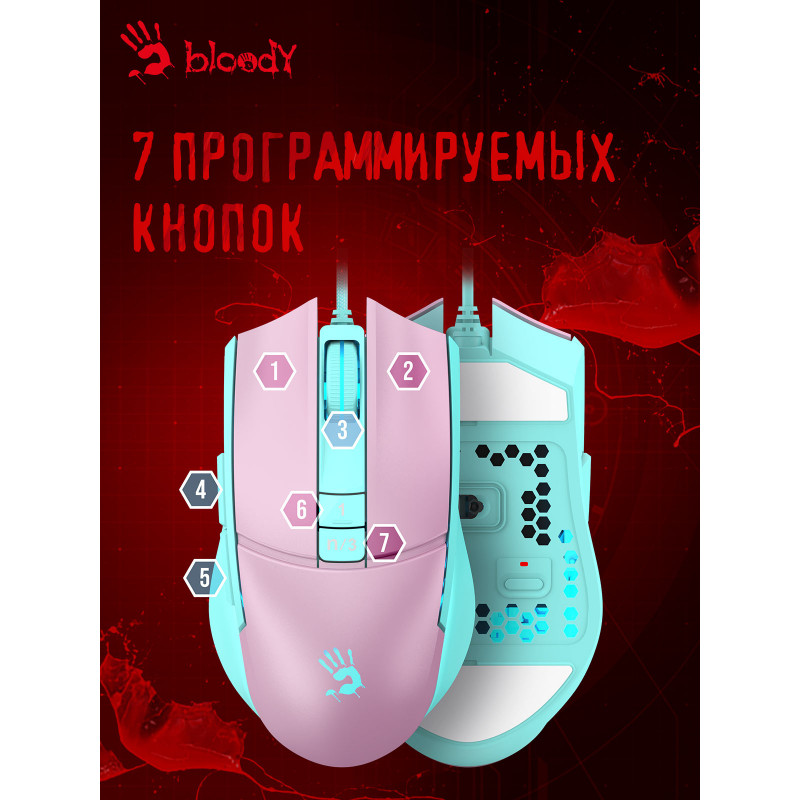 Мышь A4Tech Bloody L65 Max розовый/голубой оптическая 12000dpi USB 6but (L65 MAX/SKY PINK)