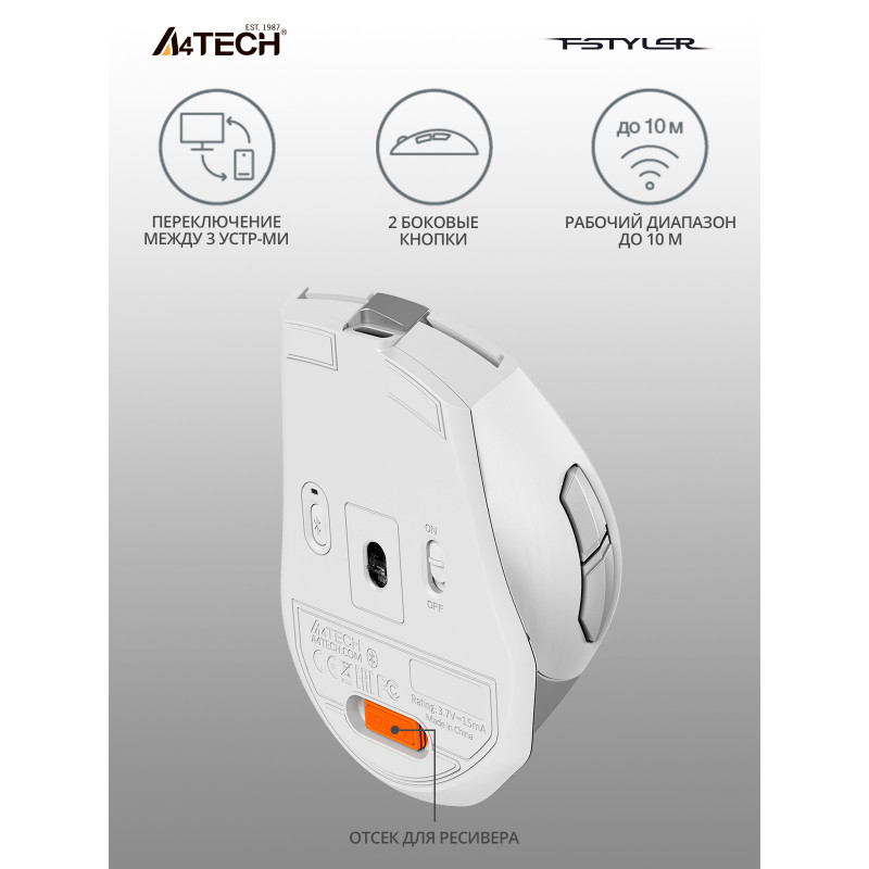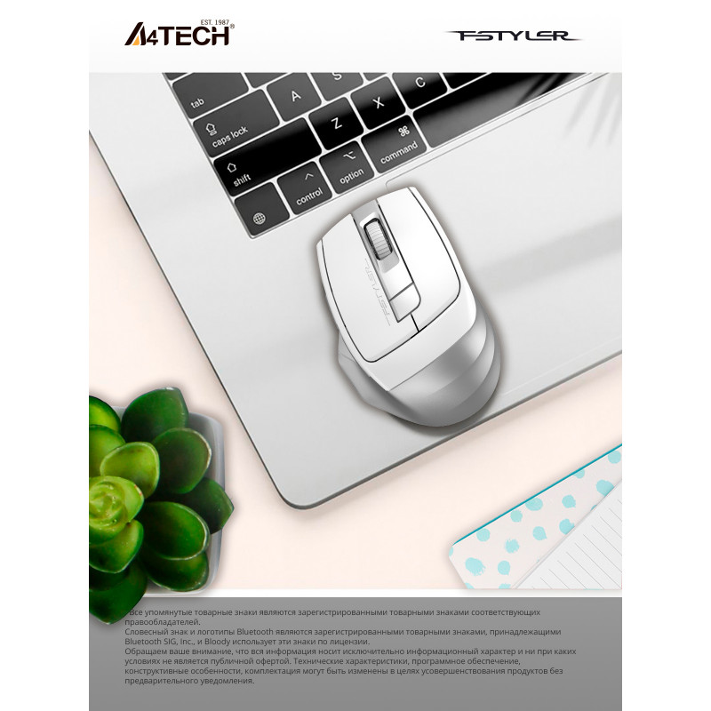 Мышь A4Tech Fstyler FB35C белый оптическая 2000dpi беспров. BT/Radio USB 6but (FB35C ICY WHITE)