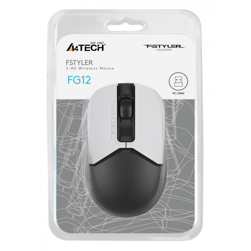 Мышь A4Tech Fstyler FG12S Panda белый/черный оптическая 1200dpi silent беспров. USB 3but