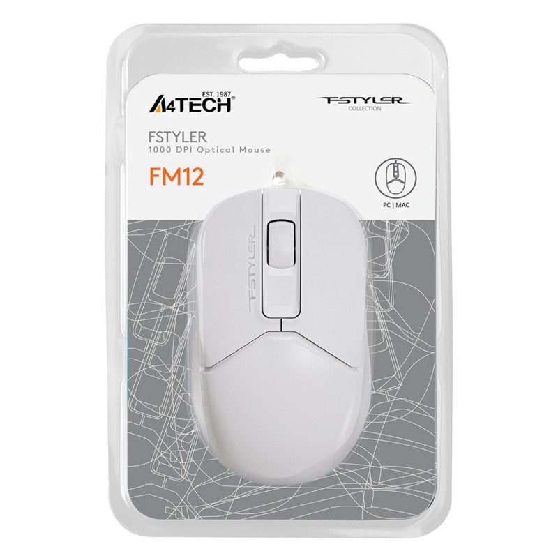 Мышь A4Tech Fstyler FM12S белый оптическая 1200dpi silent USB 3but (FM12S WHITE)