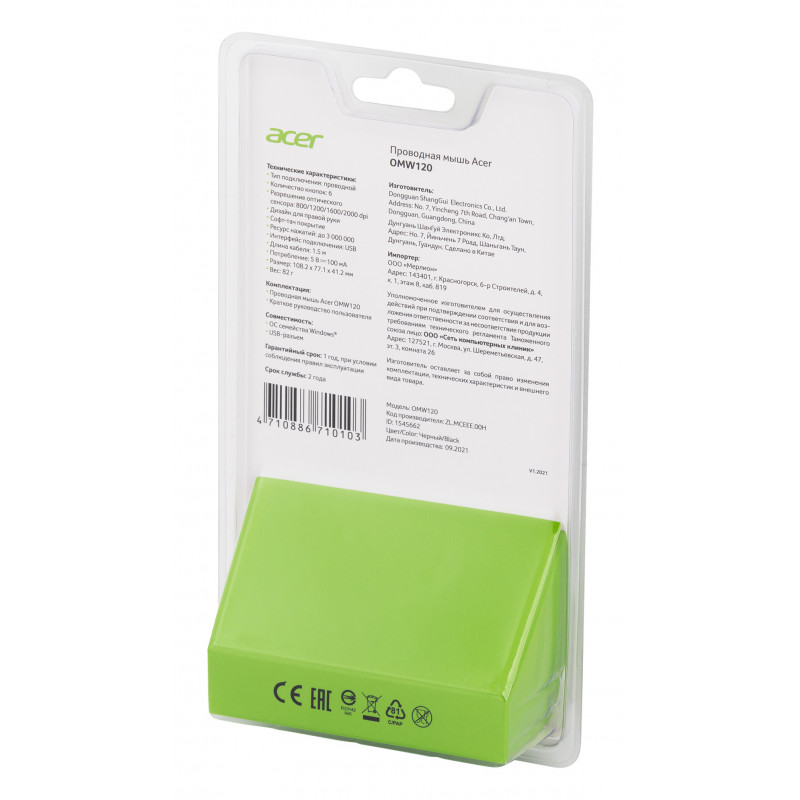 Мышь Acer OMW120 черный оптическая 2000dpi USB 6but (ZL.MCEEE.00H)