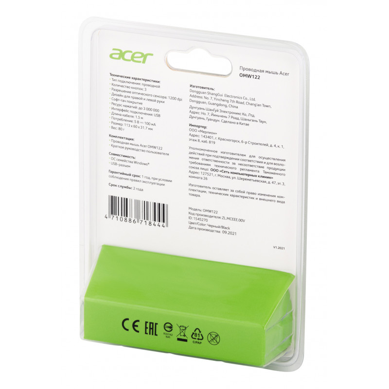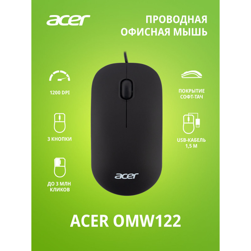 Мышь Acer OMW122 черный оптическая 1200dpi USB 3but (ZL.MCEEE.00V)