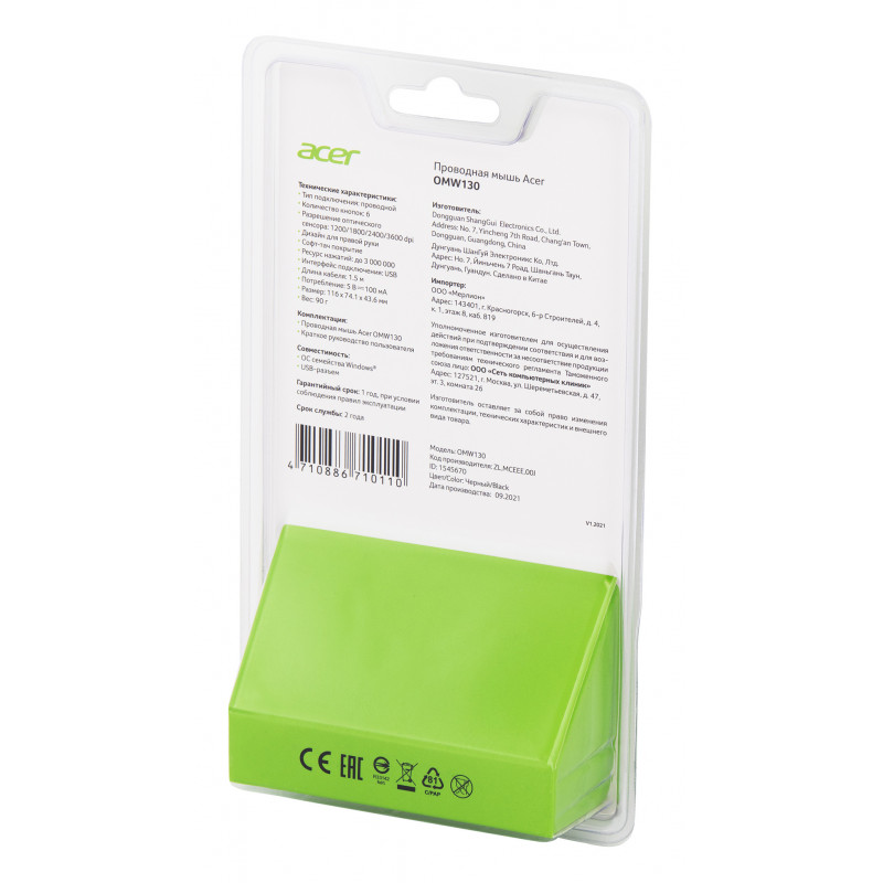 Мышь Acer OMW130 черный оптическая 3600dpi USB 6but (ZL.MCEEE.00J)