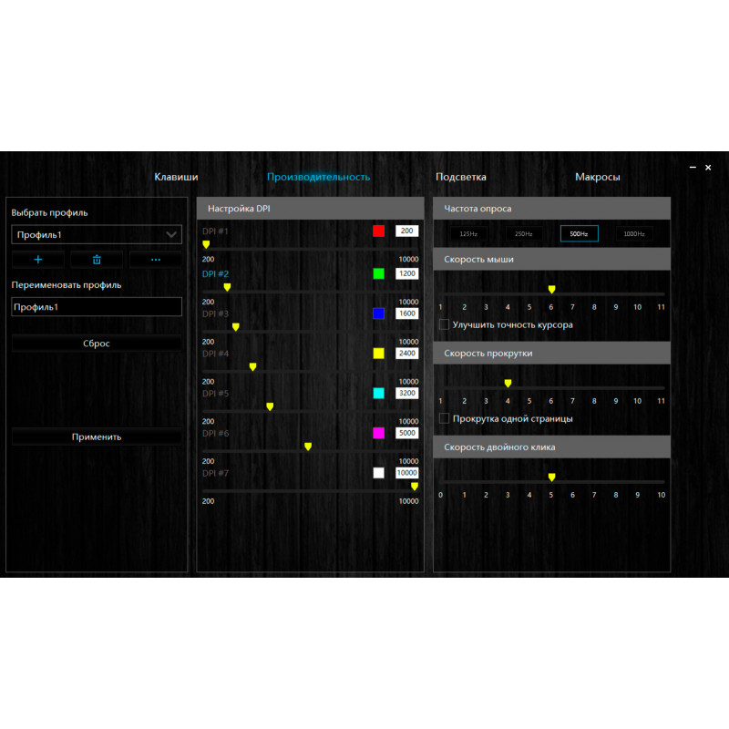 | Поддержка разрешений | 800/1600/2400/3200/4800/7200 |