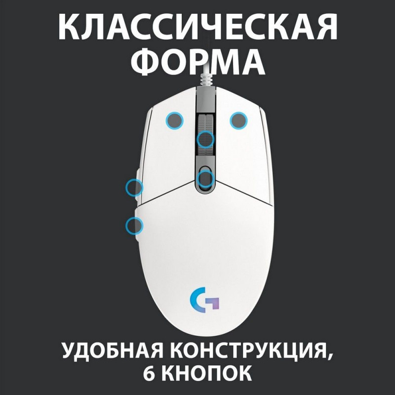 Мышь Logitech G102 LightSync белый оптическая 8000dpi USB 6but (910-005809)