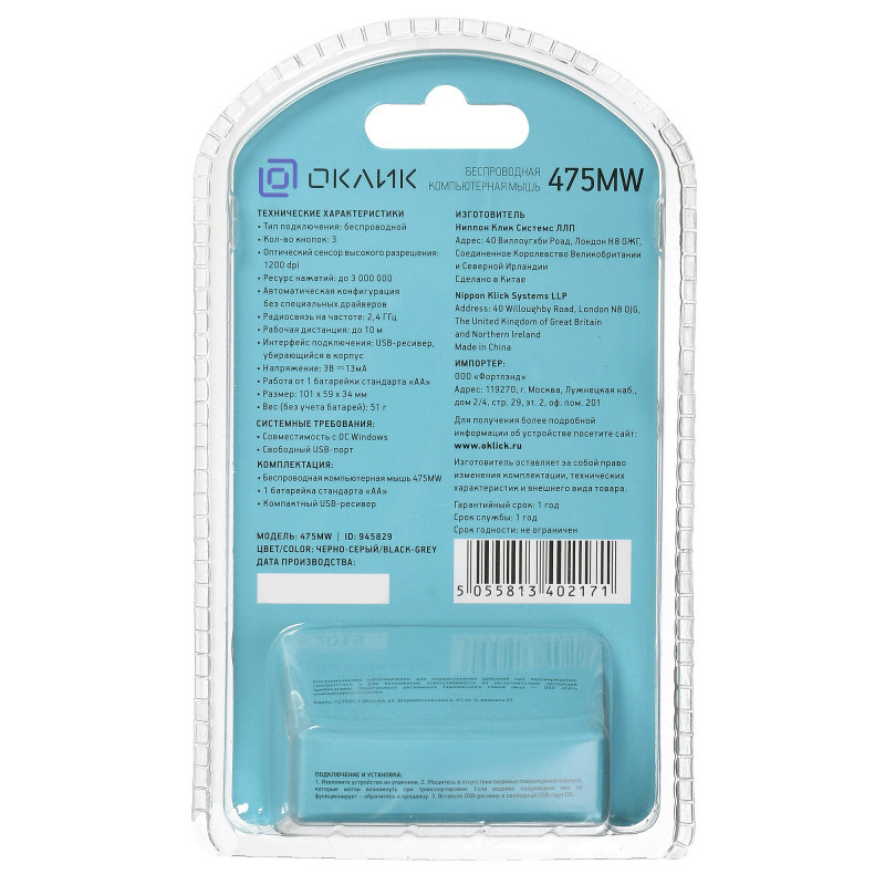 | Комплект поставки | Беспроводная оптическая мышь 475MW 2 батарейки стандарта «AAA» USB-ресивер |