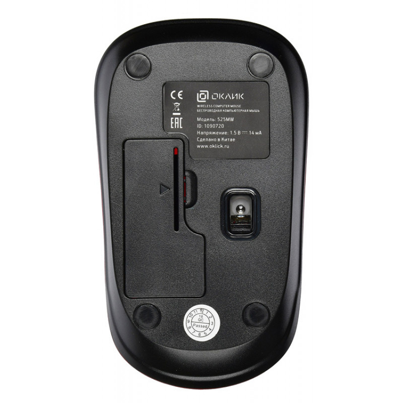 Мышь Оклик 525MW черный/красный оптическая 1000dpi беспров. USB для ноутбука 3but (1090720)