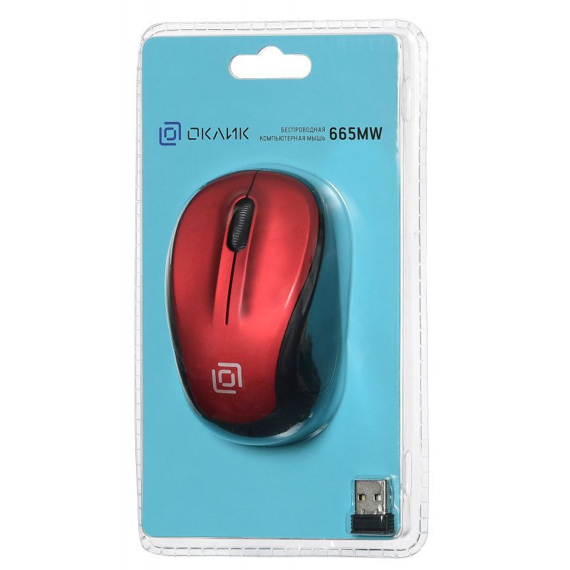 Мышь Оклик 665MW черный/красный оптическая 1600dpi беспров. USB для ноутбука 3but (1025135)