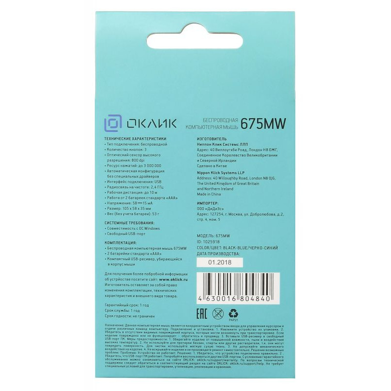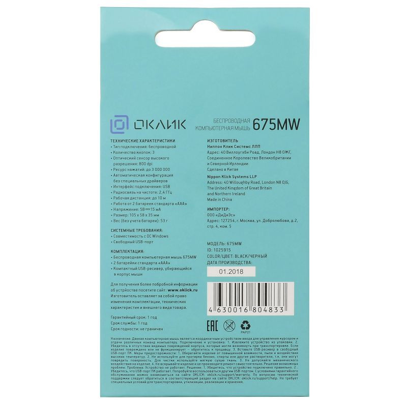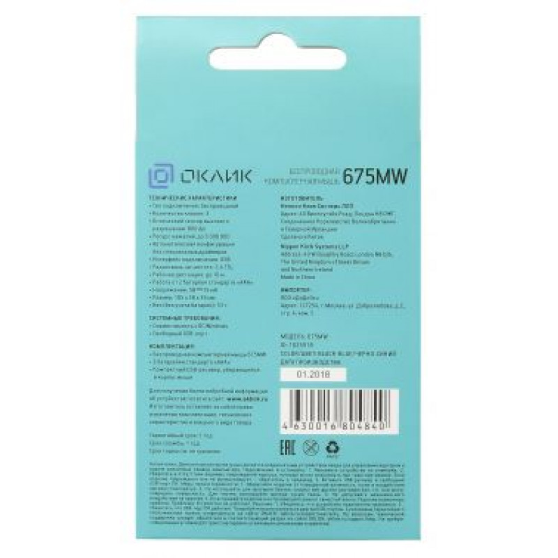 | Комплект поставки | Беспроводная компьютерная мышь 675MW 2 батарейки стандарта ААА Компактный USB-ресивер |