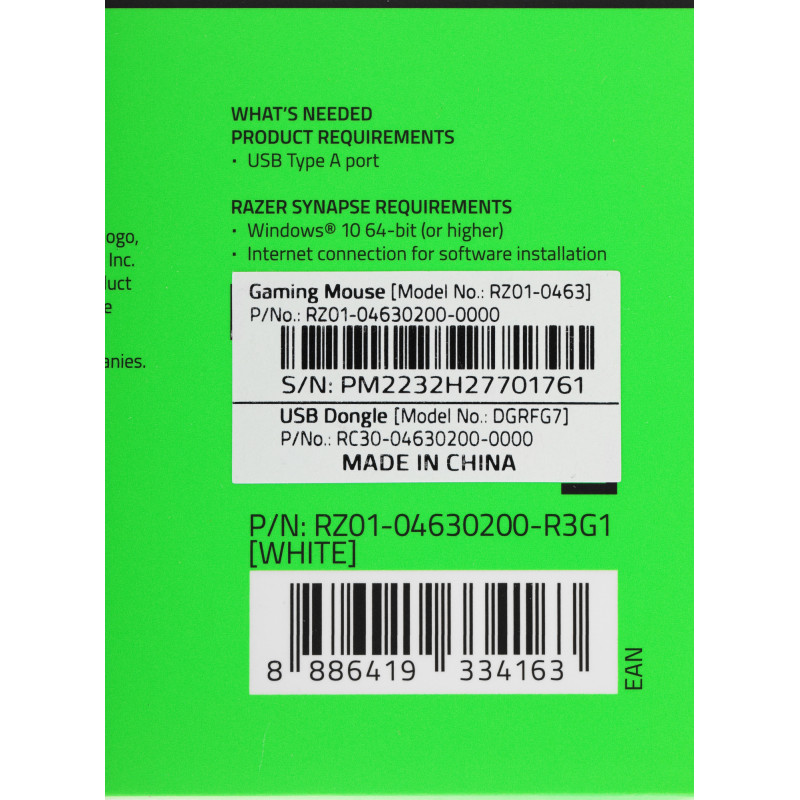 Особенности | Беспроводная связь Razer Hyperspeed или проводной режим. 5 программируемых кнопок. Сверхлегкая 63 гр |