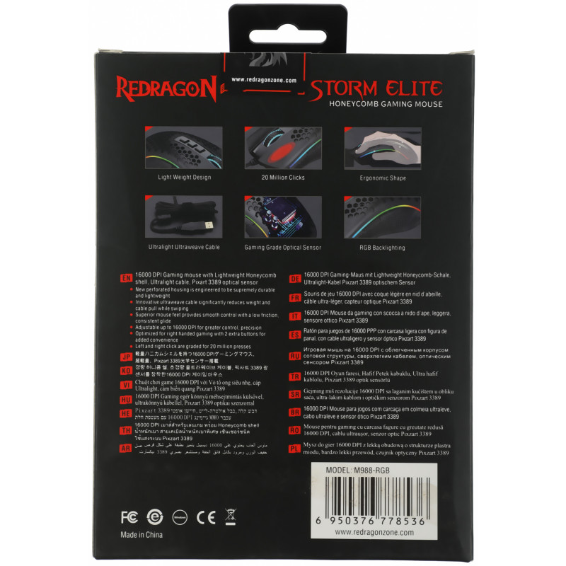 Мышь Redragon Storm Elite черный оптическая 16000dpi USB для ноутбука 7but (77853)