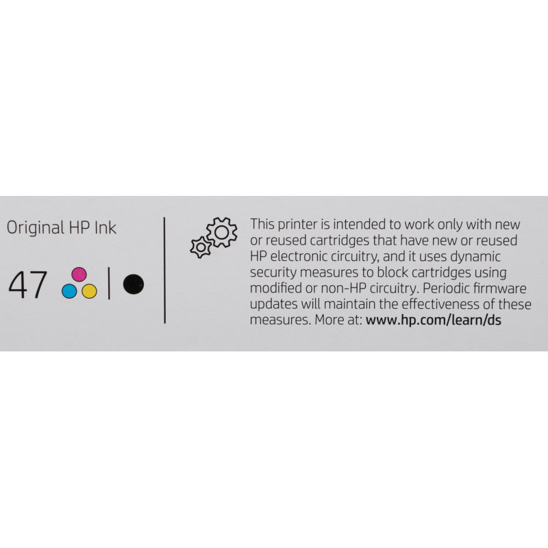 | Расходные материалы | картридж HP 47 черный 6ZD21AE ~1300 страниц, картридж HP 47 трехцветный 6ZD61AE ~700 страниц |